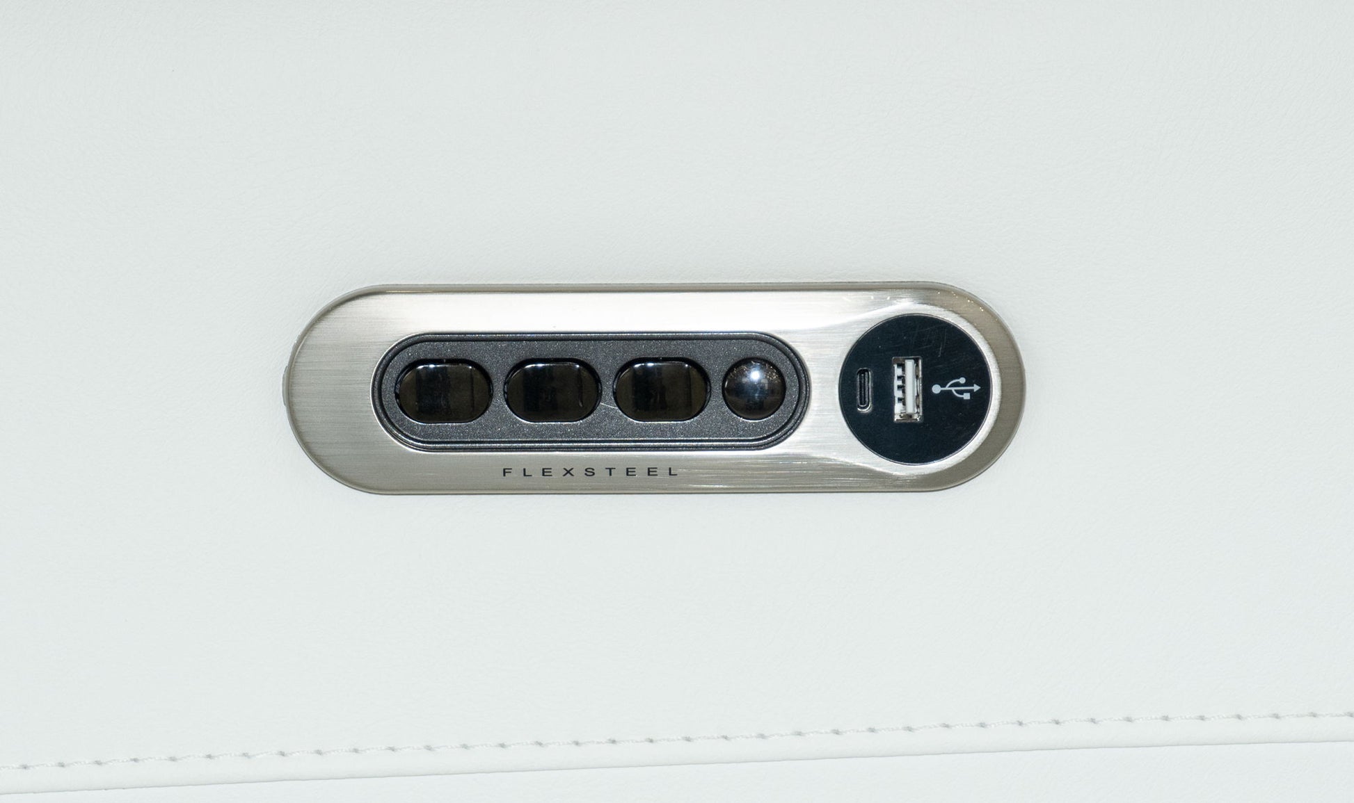 Bring your living room to the next level with the sleek, innovative Alister power gliding sofa. This transitional style sports sleek curves upholstered in your choice of luxurious top-grain leather. A step above typical reclining, these gliding seats provide a smooth, versatile, and unique experience. The ultimate in futuristic comfort, this sofa includes a drop down back cushion with two cupholders, a wireless charging pad, and USB ports to keep your devices charged and within reach. Kick back in the Alister, the future of relaxation.