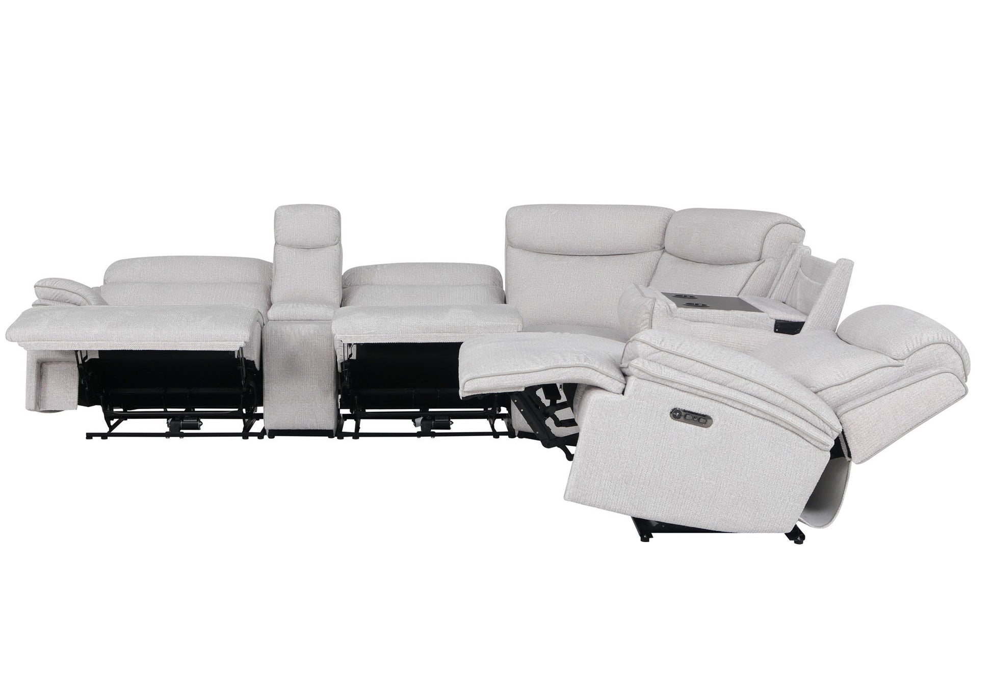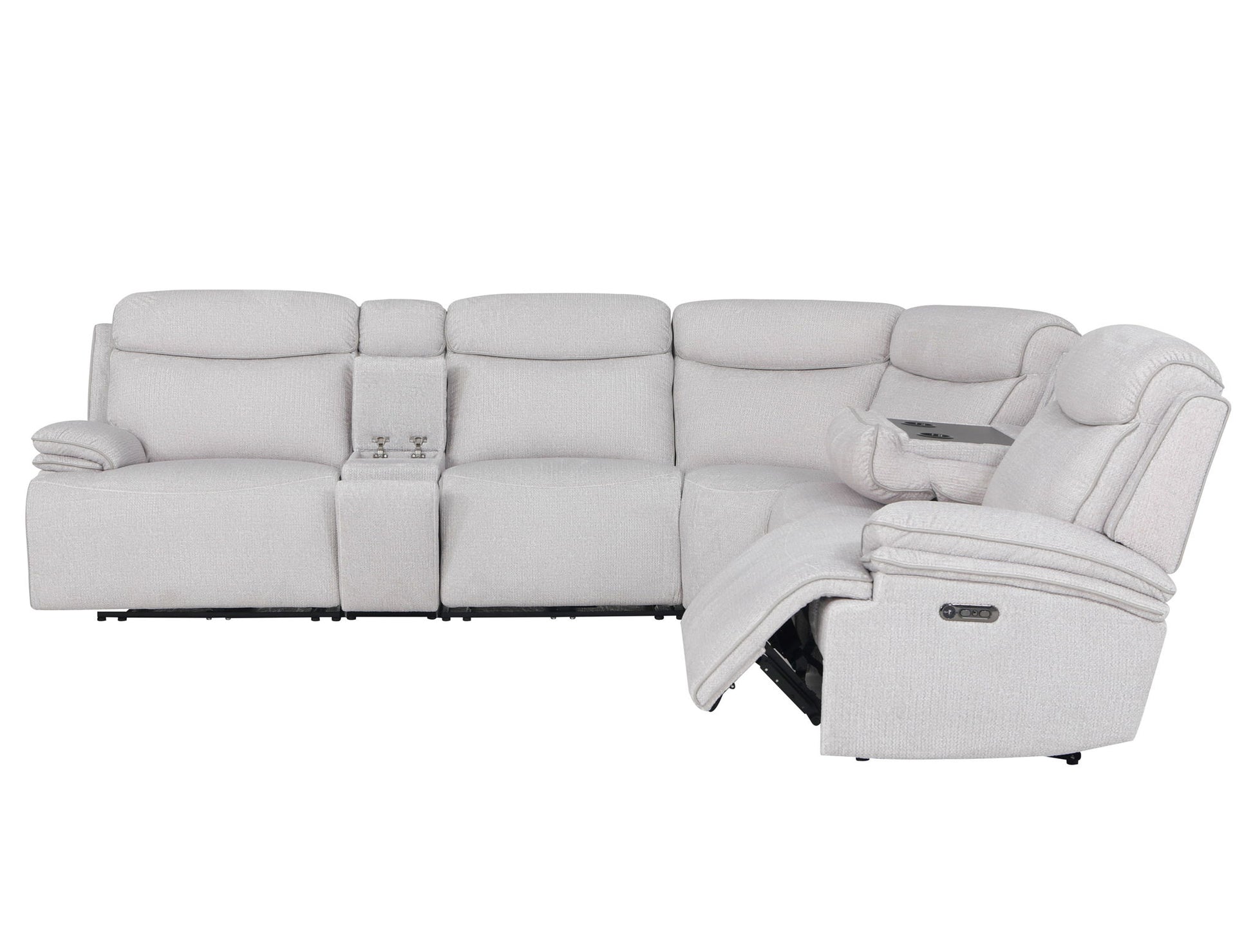 Alpine - 7 Piece Zero Gravity Power Reclining Sectional With Power Adjustable Headrests - Airy Snow