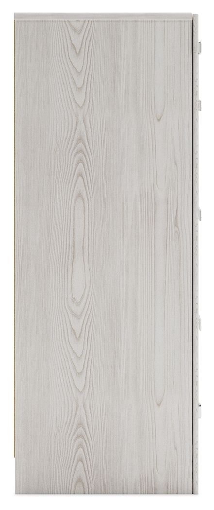 Light finish with subtle pearl effect over replicated cedar grain and authentic touch. Cases and bed are accented with faceted chrome details. Large scaled chrome handle with mosaic details. Side roller glides for smooth operating drawers. Drawer interiors lined with a replicated linen design for a clean finished look. Queen/full (57) and king/cal king (58) upholstered panel headboards are accented with LED lighting and include a remote for color and brightness options. Included remote holder discreetly keeps light remote accessible. Queen (57,65) and king (58,69) headboards are accented with emulated crystal tufted gray upholstery. Queen (65) and king (69) upholstered panel bookcase headboards feature glitter details accented with LED lighting. Both king and queen beds have a panel footboard (54,56) and storage footboard option (54S, 56S). Queen (57,65) and king (58,69) headboards can attach to a bolt-on metal bed B100-31 or B100-66 respectively. Both USB and Qi wireless charging options are provided with the nightstand. Queen (54, 54S, 65) and king (56, 56S, 69) can use -95 platform rails and require B100-13 (queen) or B100-14 (king) roll slats eliminating the need for a box spring. Safety is a top priority, clothing storage units are designed to meet the most current standard for stability, ASTM F 2057 (ASTM International). Drawers extend out to accommodate maximum access to drawer interior while maintaining safety.