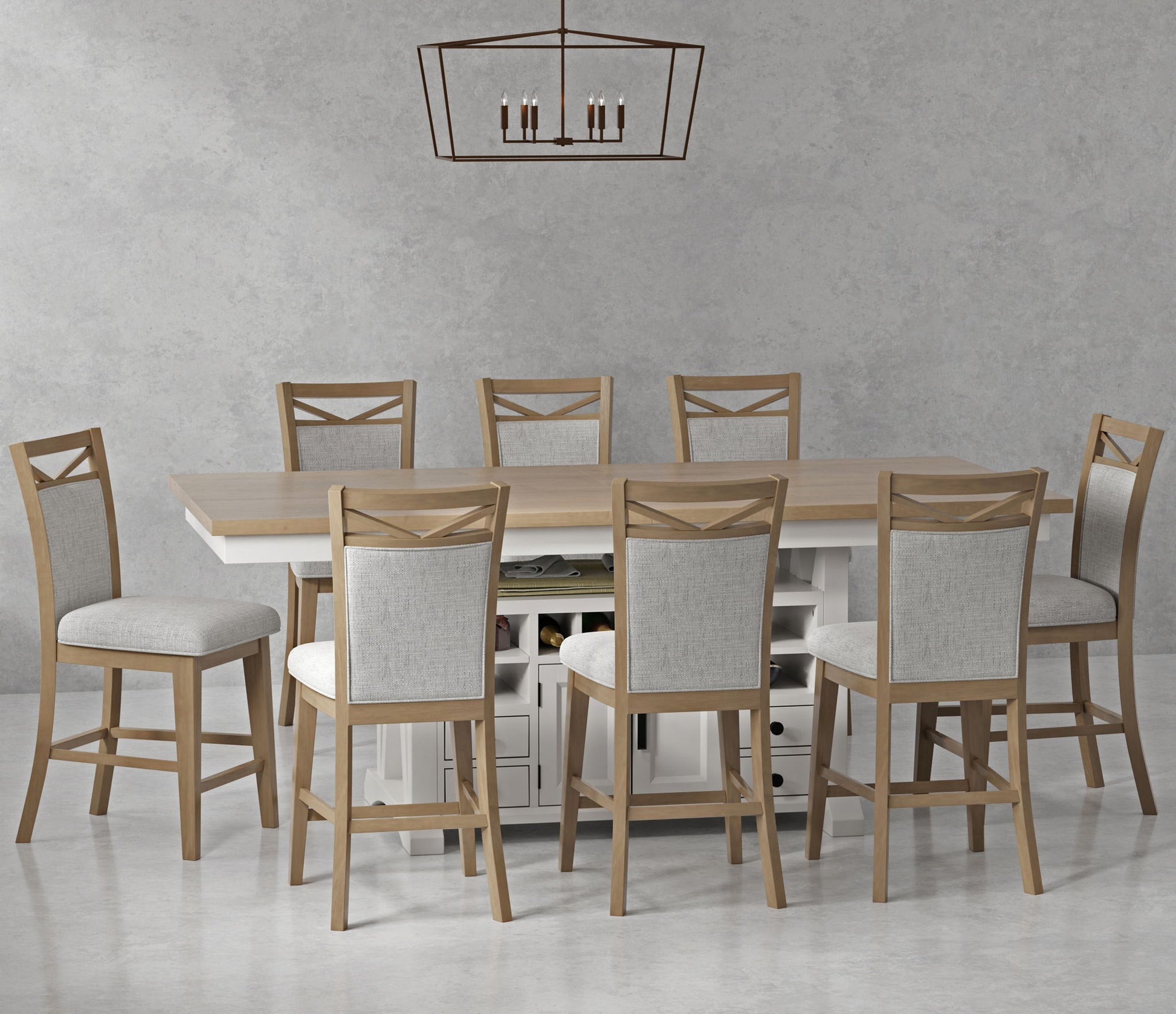 Americana Modern Dining - Island Counter Height Table With 8 Upholstered Chairs - Cotton