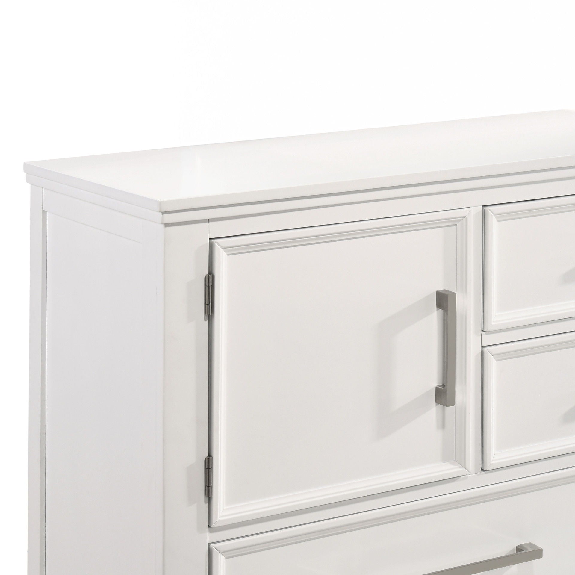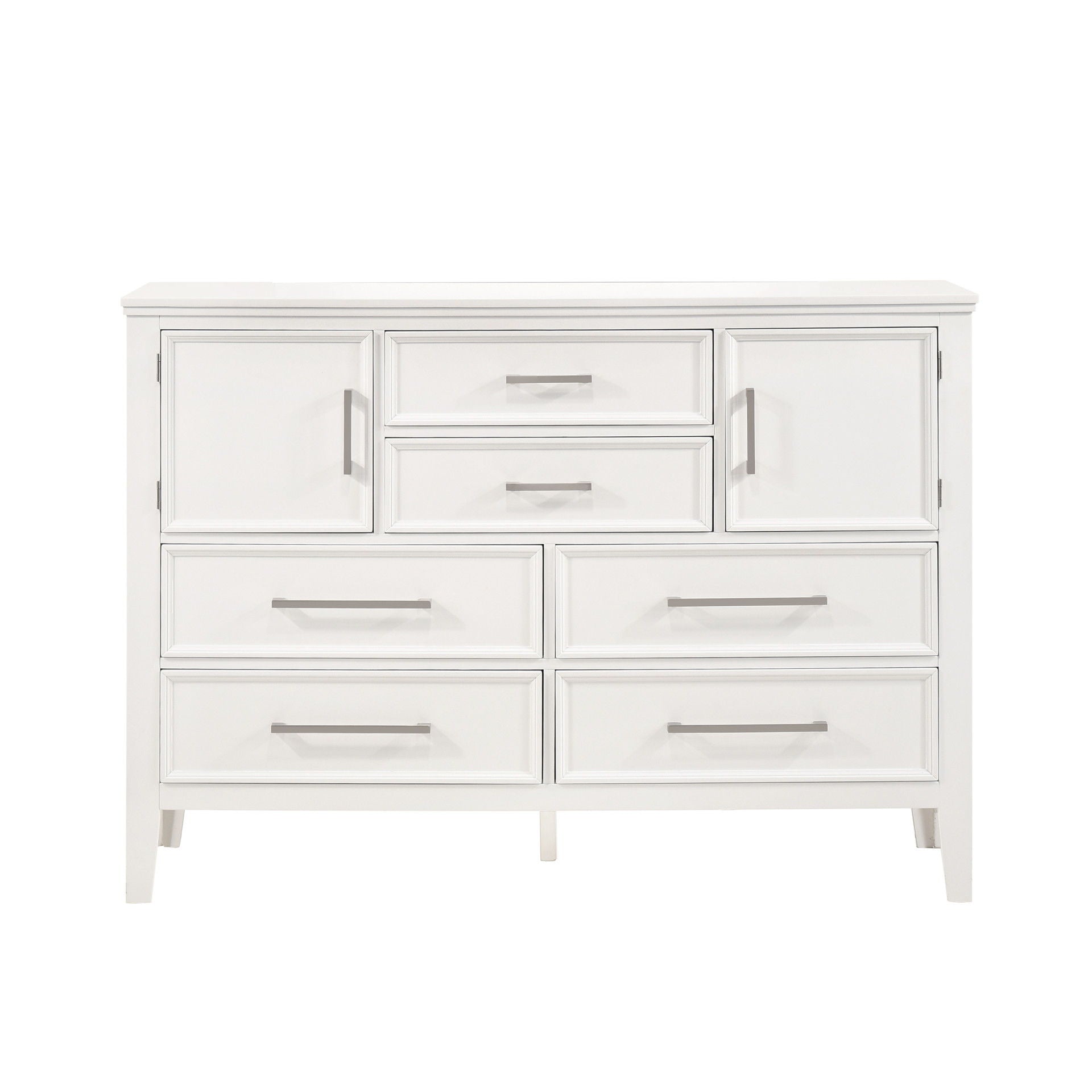 The Andover Six Drawer Wood Dresser is the perfect blend of durability, functionality, and style, making it a standout addition to any bedroom. Expertly crafted from solid Rubberwood, manufactured woods, and wood veneers, this dresser is built to last, showcasing the natural beauty of real wood. The rich finish undergoes a meticulous multi-step process, including sand-throughs and white glazing, which imparts a weathered yet sophisticated appeal, beautifully highlighting the wood’s natural grains and unique characteristics. The Andover dresser’s clean lines and modern rustic design are complemented by sleek, elongated metallic handles that add a touch of sophistication, contrasting elegantly against the warm, dark wood finish. Framed drawer fronts provide added depth and dimension, while the sturdy block-style legs ensure a solid foundation that underscores the dresser's robust and enduring structure. The drawers glide smoothly on Kenlin drawer glides, ensuring reliable operation, and feature dovetail joinery, reflecting superior craftsmanship and lasting quality. This dresser not only offers ample storage but also enhances your bedroom’s style with its timeless design.