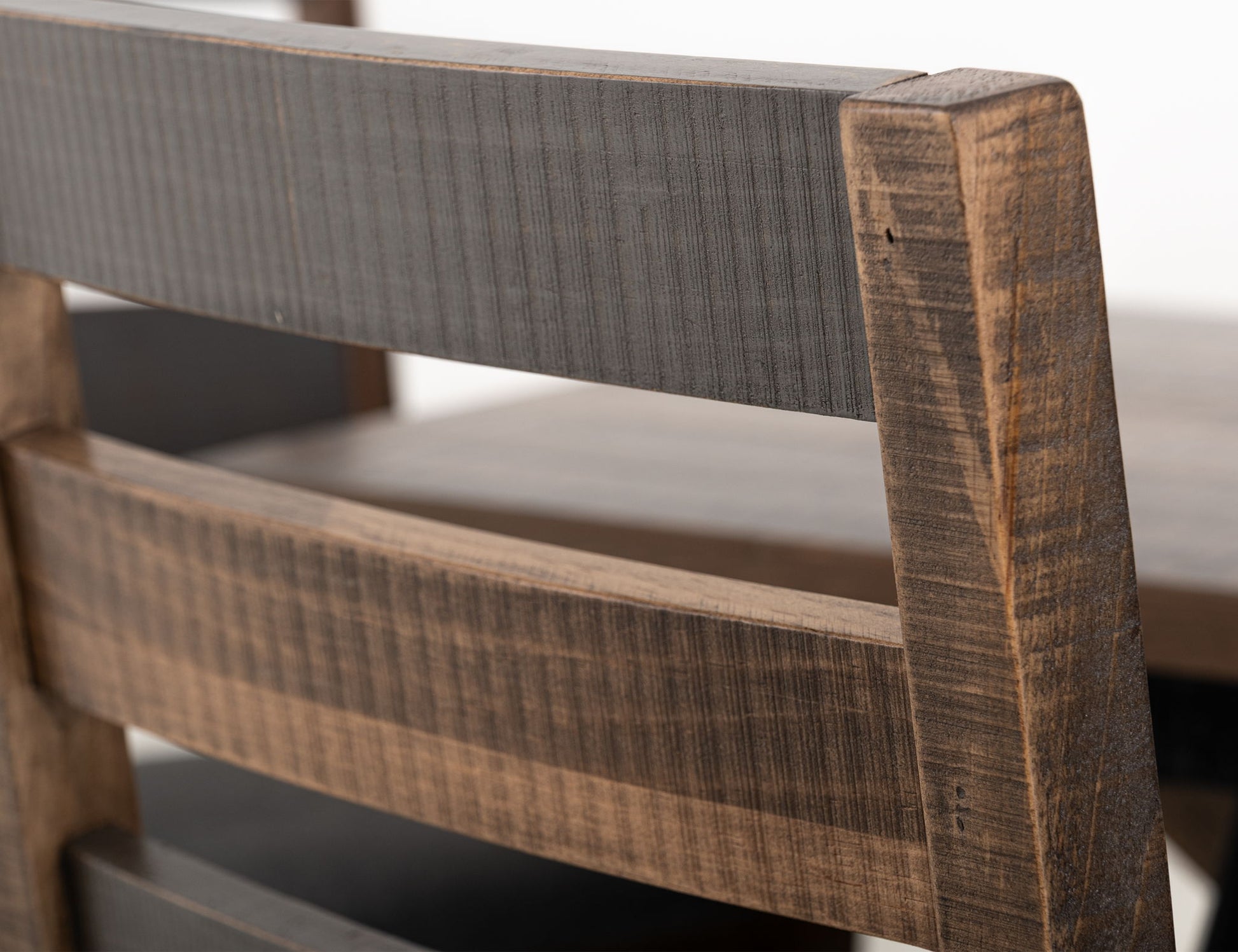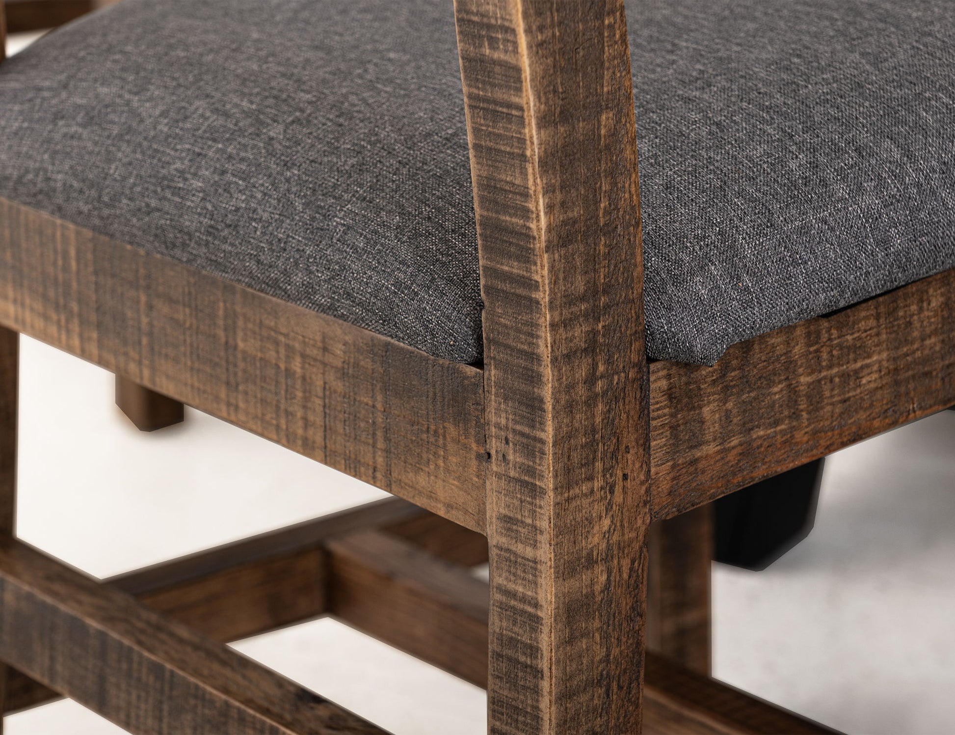 Solid Wood Chair. The Antique Collection is constructed using 100% solid Pine Lumber that has been hand stained and distressed with Restoration hardware. This beautiful Collection features many highs and low finish colors making it a striking addition to any room décor you choose to design.