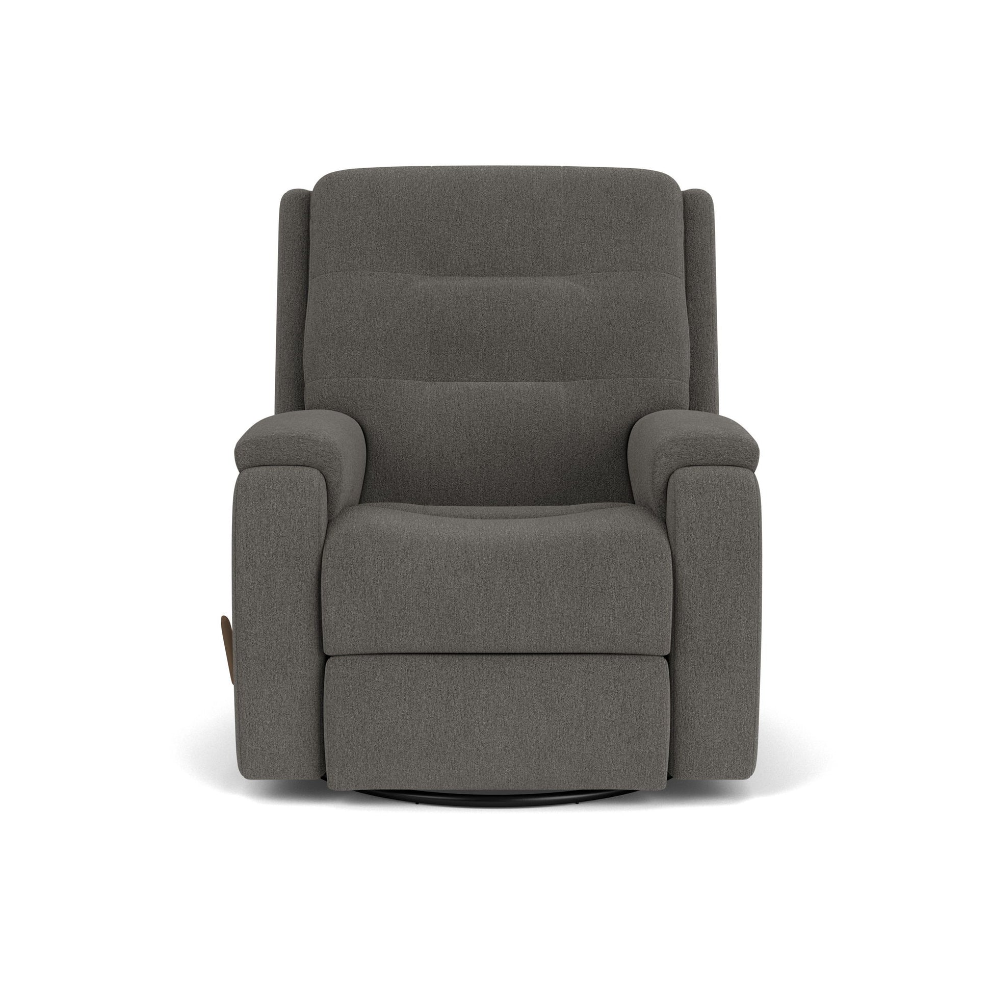 Picture yourself in comfort and style. Arlo is a transitional motion style that features a refined, rounded pad-over track arm that is lined with blind seams. It's pull-tufted back cushions create a unique subtle pattern and added pockets of comfort. This swivel gliding recliner's proven comfort combination is created from the generously scaled triple-divide back, contour seating, and chaise pad design. The Blue Steel Spring ensures this piece is in it for the long-haul. The smooth release handle lets you change angles effortlessly from an upright to a fully reclined position. Arlo will bring plush comfort and tailored elegance to your room.