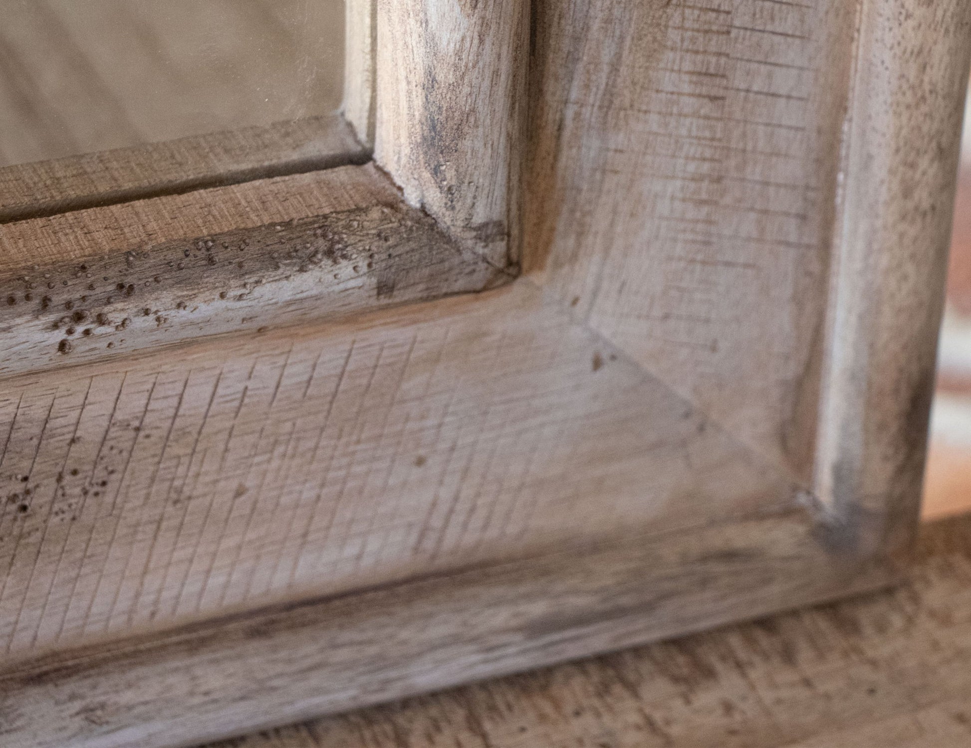 Bedroom Mirror. The Aruba collection is inspired by the grandeur of the Old World. Each piece is meticulously crafted from 100% sustainable mango wood. Our case goods boast elegantly hand-turned details that add a touch of sophistication to any space. The enchanting drift sand finish further enhances the inherent beauty of the mango wood grain, accentuating its natural mineral deposits and creating a truly distinctive texture and depth.
