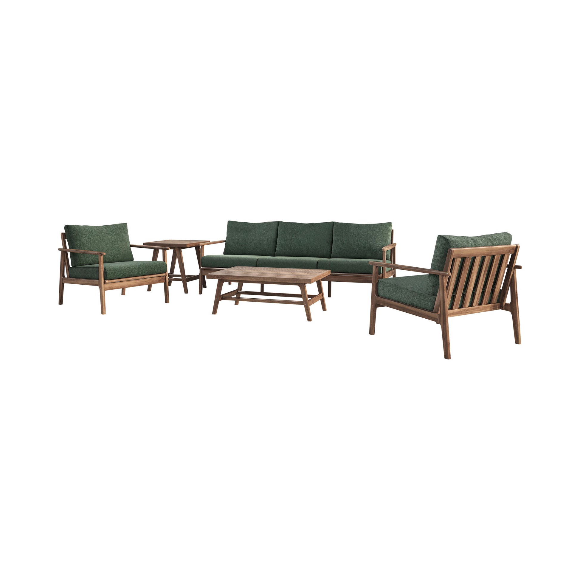 The Ashton Patio Set seamlessly blends durability, comfort, and timeless design to create the ultimate outdoor retreat. Expertly crafted from FSC-Certified Acacia solid wood, this set offers exceptional strength and natural resistance to the elements, ensuring long-lasting beauty and reliability. A meticulously applied light, clear multistep finish enhances the wood''s rich texture and color while adding a protective layer for superior outdoor durability. The sofa is designed for lasting comfort with plush, high-density 12cm foam seat and back cushions, upholstered in exclusive Sundura™ fabric—a solution-dyed 100% polyester that resists fading, mildew, and moisture, keeping the set vibrant and fresh year after year. With clean, straight lines, slatted backs, and a low-profile frame, this minimalist design delivers sleek functionality and modern elegance. The slatted tabletop not only adds a classic touch but also improves water drainage for practical outdoor use. Each piece showcases one-of-a-kind wood grain variations, offering unique patterns and organic details that bring timeless beauty and authentic charm—ensuring no two pieces are ever exactly alike.