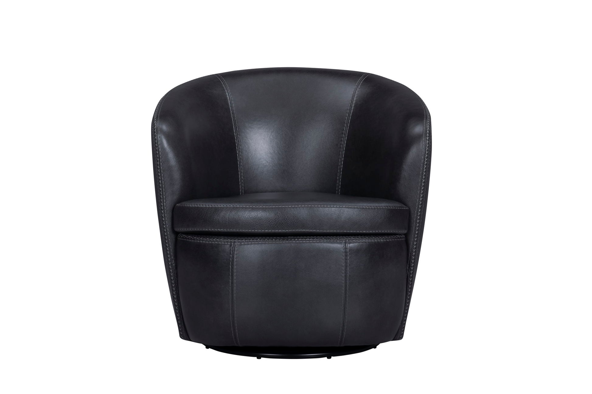 Barolo - 100% Italian Leather Swivel Club Chair - Vintage Onyx