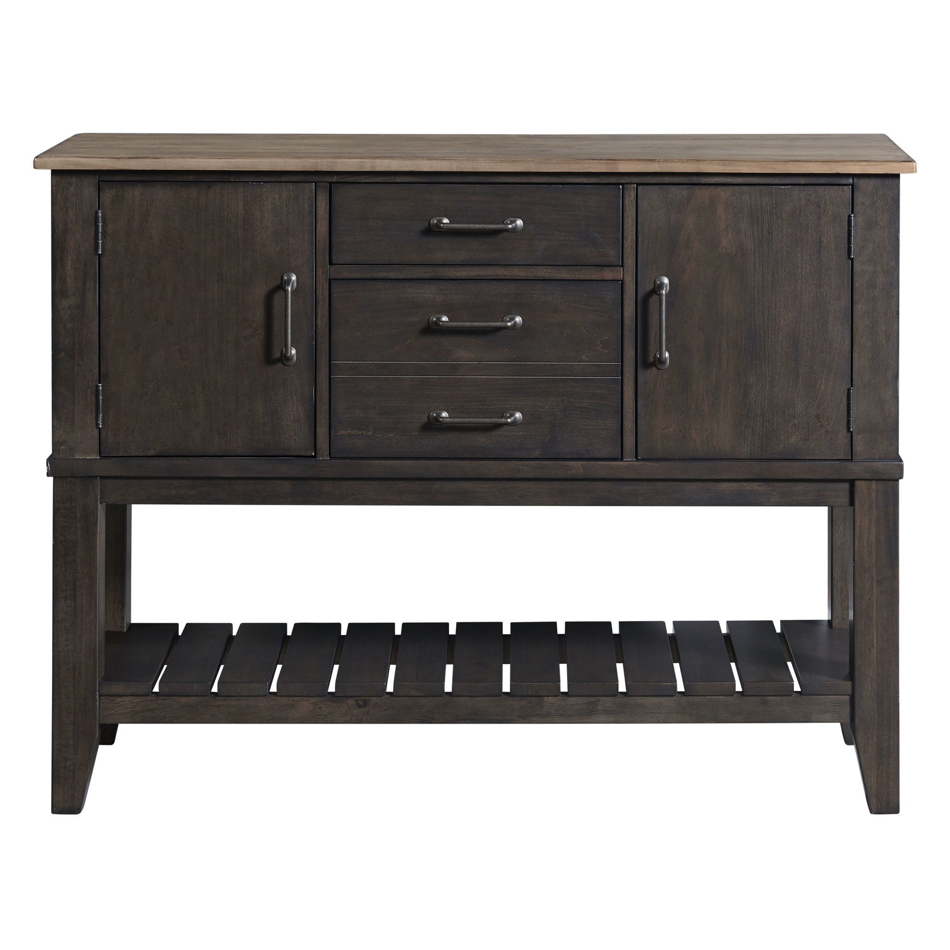 - Two-Toned Charcoal and Walnut Finish