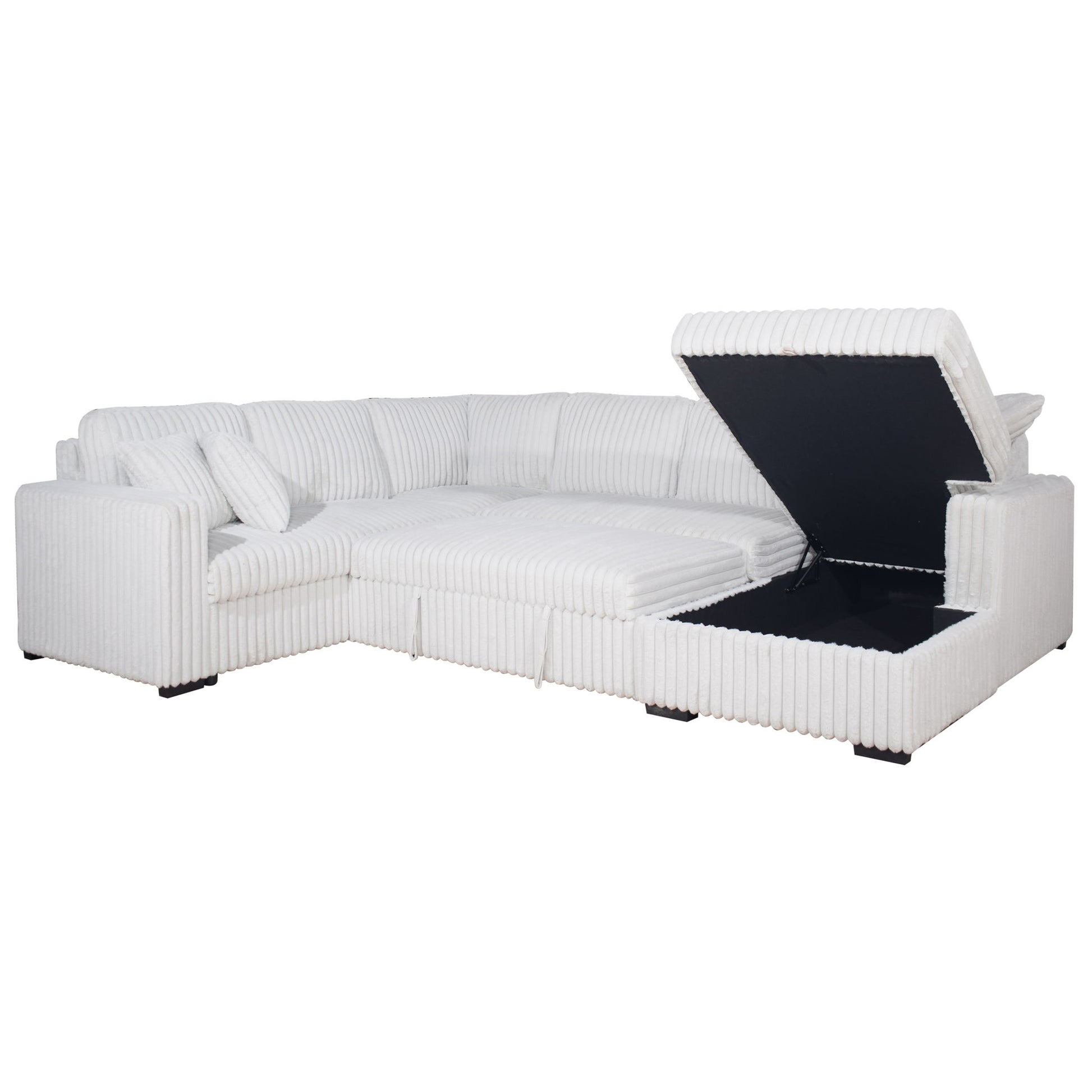 The Bliss Sectional Sleeper with Storage Chaise brings comfort and practicality together in a cozy, inviting design that’s perfect for any home. Built with sturdy hardwood and plywood frames, it offers a reliable foundation that lasts. The plush, wide-ribbed corduroy fabric feels irresistibly soft, wrapping you in warmth as you unwind. With plenty of seating for family gatherings or lazy days, this spacious sectional also comes with matching pillows for an added touch of comfort. The pull-out bed and chaise with hidden storage for blankets and pillows make it ideal for welcoming overnight guests or enjoying a quiet afternoon nap. Thoughtfully designed with built-in USB chargers, your devices stay powered without disrupting your relaxation. The Bliss Sectional blends modern functionality with a welcoming, homey vibe, making it a perfect addition to any living space.