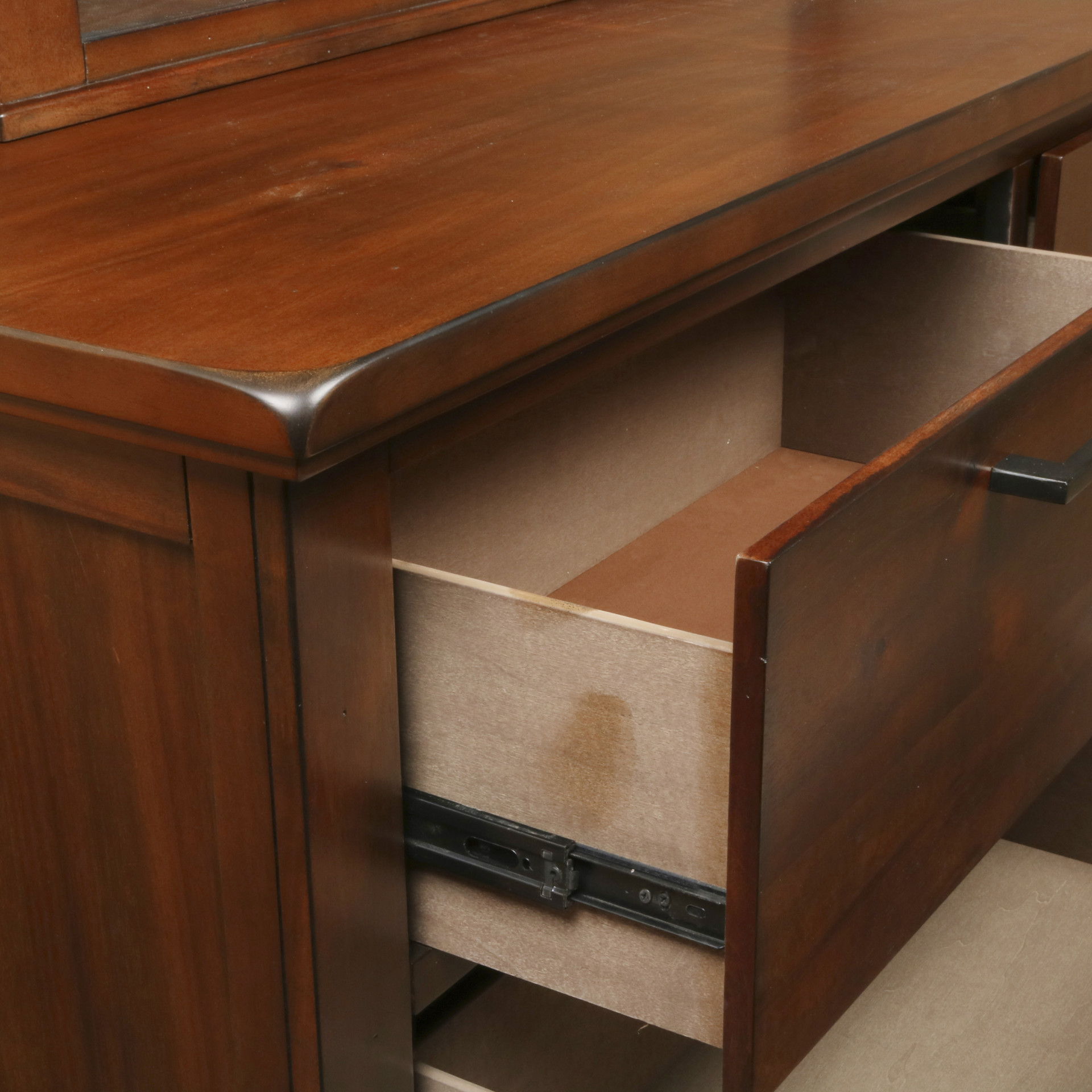 The Cagney Dresser Mirror combines durability with timeless elegance, making it a perfect complement to any bedroom décor. Constructed from solid Rubberwood, premium engineered woods, and authentic Acacia wood veneers, this mirror is built to last while maintaining the natural warmth and beauty of the wood. The hand-rubbed, multi-step finish, enhanced by a subtle glaze, deepens the rich tones and highlights the intricate, timeworn details, giving the mirror a sense of heritage and refined craftsmanship. The wide moldings encase crystal-clear, low-distortion beveled glass, providing a flawless reflection that enhances the room's sophistication and elegance. This mirror is not only a functional addition but also a beautiful piece that adds a touch of classic style to any space.