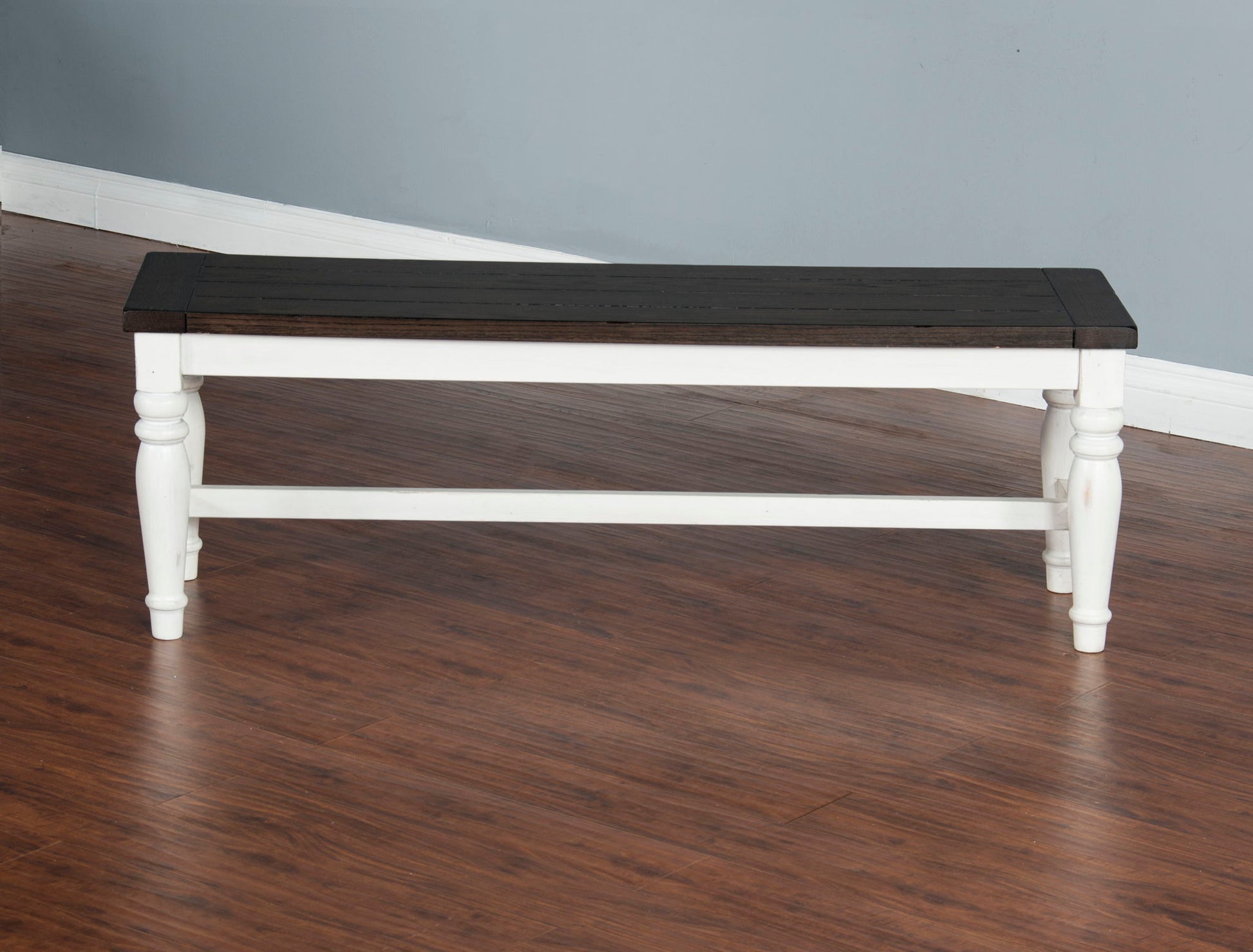This Carriage House bench with mindi veneer seat was sturdily built to last and finished in a beautiful European Cottage finish.