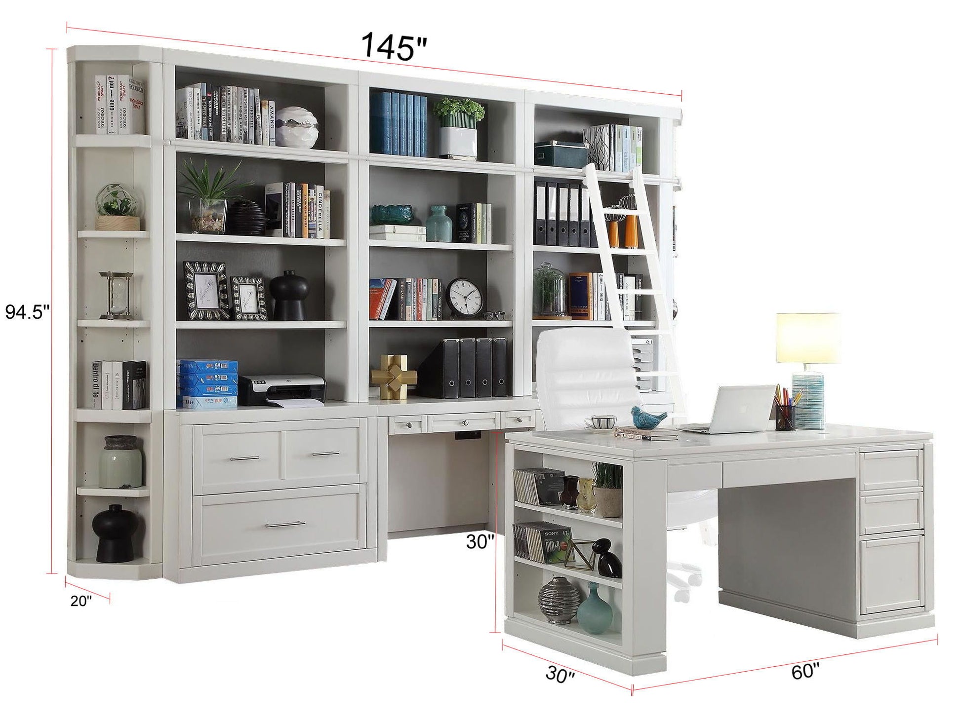 Catalina - 6 Piece Small Library Wall With Ladder - Cottage White