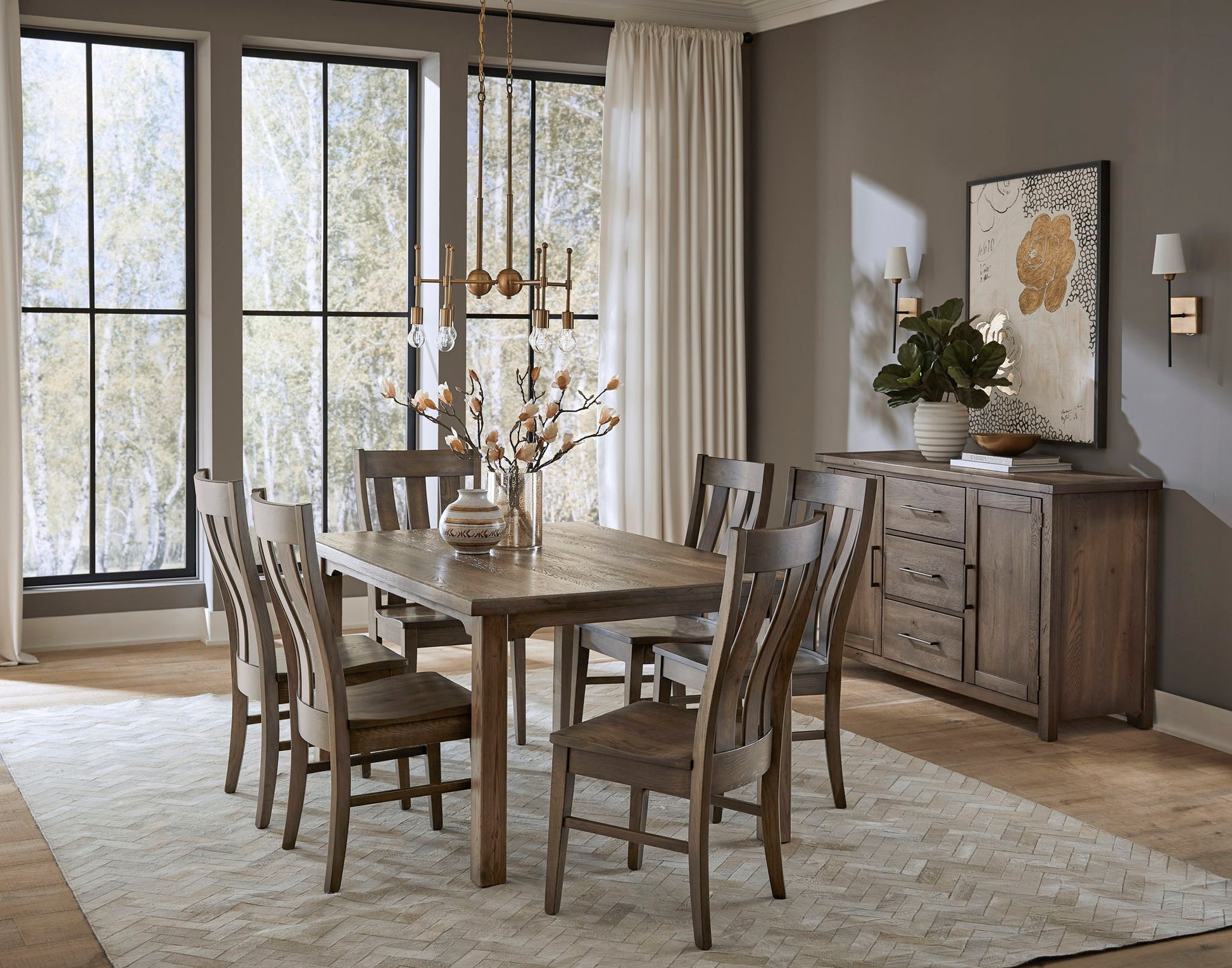 MADE IN USA - Vaughan Bassett - All produced and stocked in Galax, VA; by approximately 500 skilled craftsmen and craftswomen. Collection: Dovetail Dining - This collection takes rustic furniture to the next level. It is produced from White Oak Solids. Vaughan Bassett has develped a process that allows them to accelerate how wood ages and thus gives a very natural reclaimed wood appearance. This versatile collection has three outstanding Dining Tables, in various lengths, capable of seating 6, 8 or 10. Three terrific finishes; Natural, Aged Grey, and Bleached White. Through an innovative program with the Virginia Department of Forestry, Vaughan Bassett replaces every tree used to produce its furniture. Over the last 15 years; 2.0 million trees have been planted.