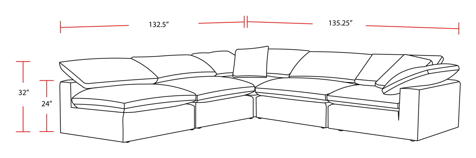 135.25"W x 132.5"D x 32.0"H - 133.3 lb