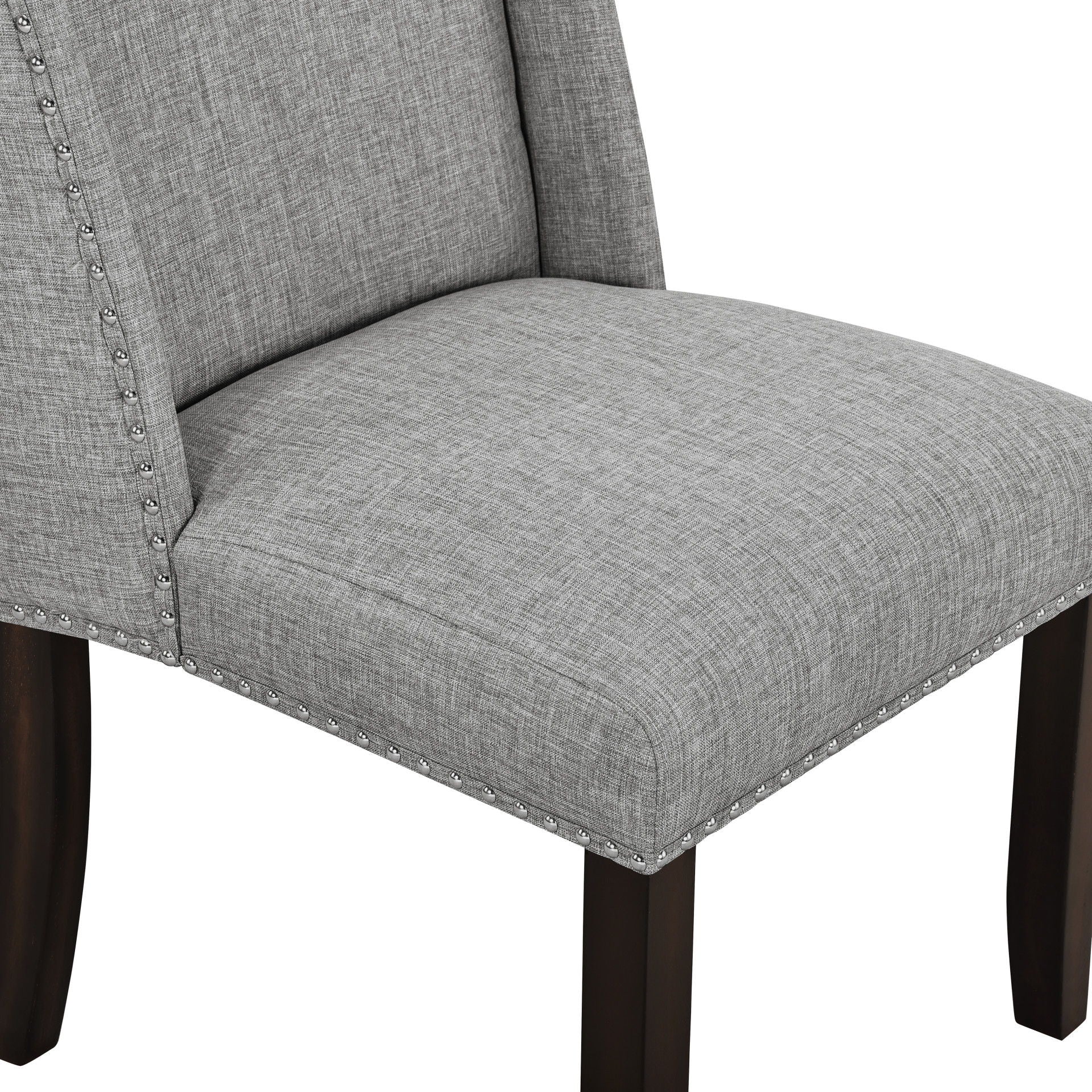 - Upscale Design: This dining chair features a sleek, contemporary design, Decorative nailhead trim along the edges adds a touch of elegance and sophistication. The dark wooden legs offer a strong contrast to the light upholstery, creating a balanced and modern aesthetic.