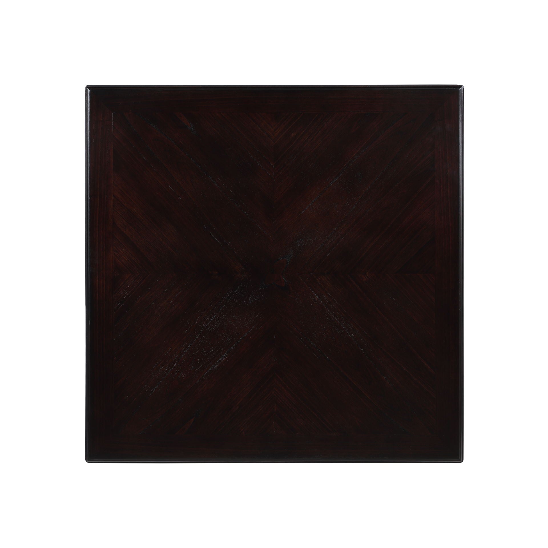 Complete your dining space with the New Classic Furniture Gia Wood Square Counter Dining Set, a harmonious blend of durability and beauty. Crafted from solid Rubberwood and Mindi veneers, this set is designed to withstand the test of time. The traditional finish, achieved through a meticulous multistep process, enhances the natural grain of the wood. The spacious 42-inch square counter table comfortably accommodates four, making it an ideal setting for intimate gatherings. The chairs, with 100% polyester upholstered cushions, are supported by solid wood legs reinforced with four base stretchers, doubling as footrests for added stability. The distinctive design includes a fancy face reverse diamond veneer dining tabletop, interlocking chain chair back detail, and tapered legs. Assembly is easy with all necessary hardware and clear instructions included. Backed by a one-year warranty, this Gia Dining Set offers both practicality and style for your dining area. Invest in quality and enjoy timeless design with this functional dining set.