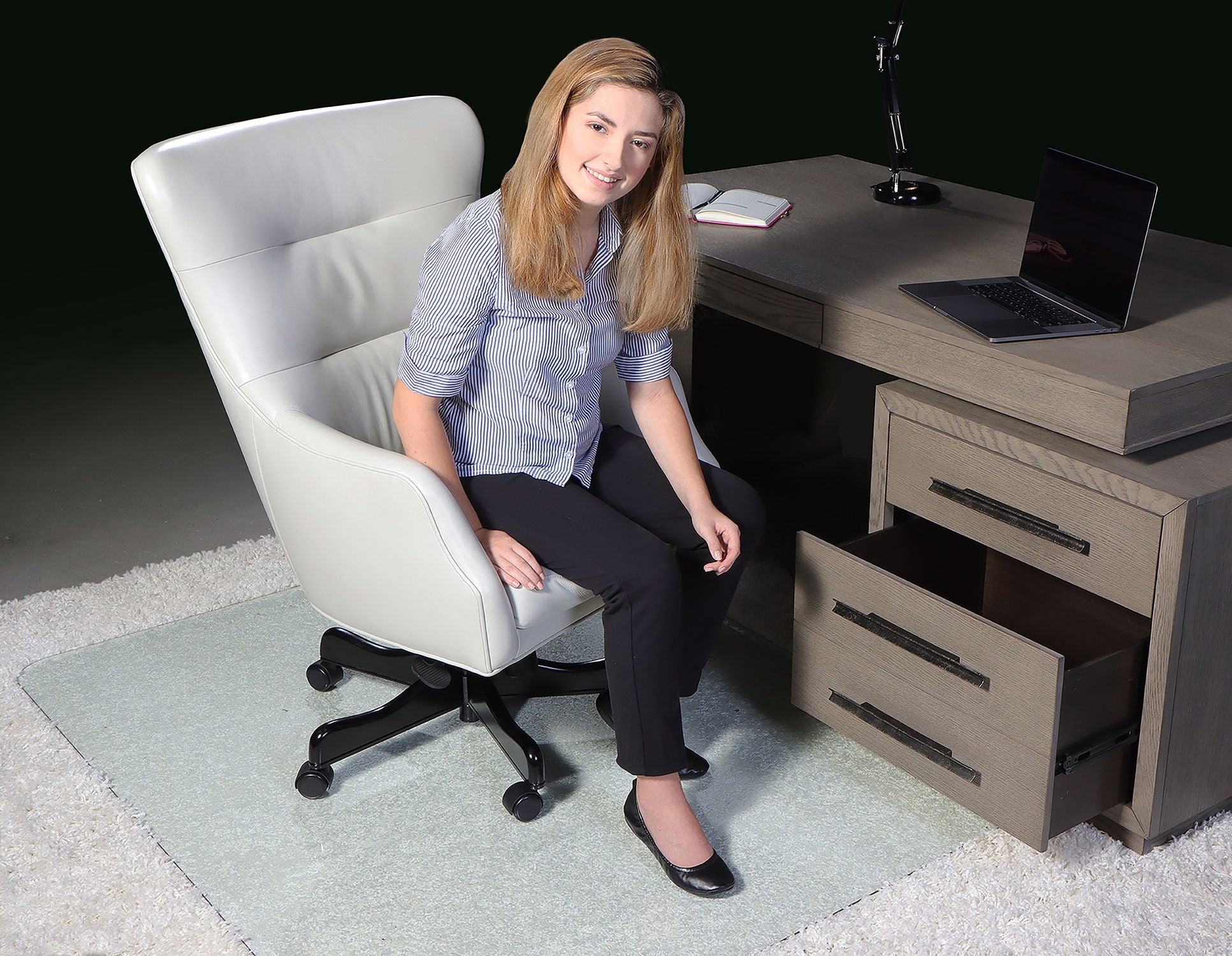 Add style and functionality to your workspace with the addition of an innovative InvisiMat chair mat. Crafted of thick tempered glass, its high-tech construction is virtually unbreakable and can withstand thousands of pounds of pressure. A beveled edge makes it easy to roll on and off while its crystal-clear design is nearly invisible. This modern office accessory is a must-have for desks anywhere in the home and works with all floor types including hardwoods and carpet. It’s truly the last chair mat you’ll ever need.