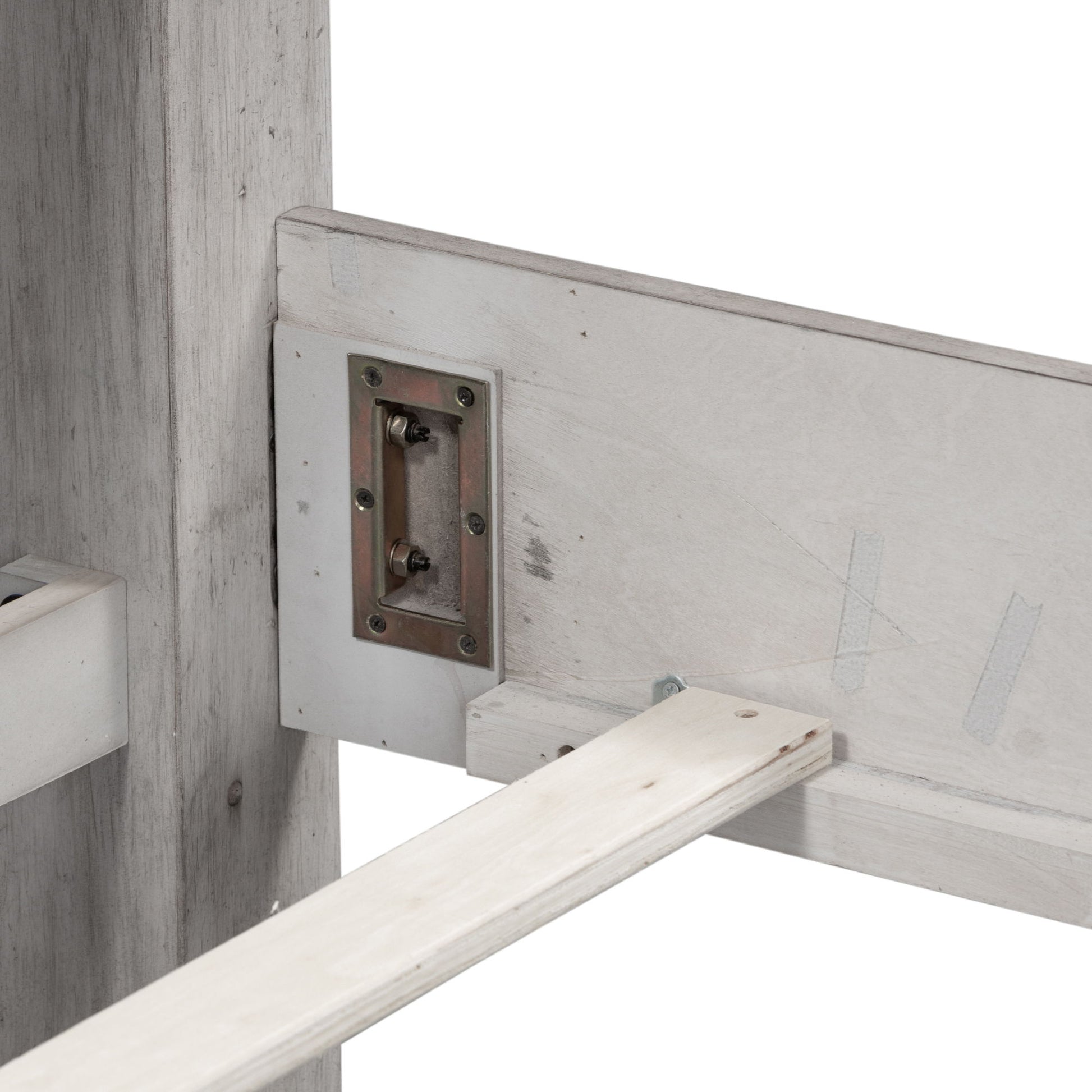 Fall into this farmhouse style Heartland panel bed. Crafted with rubberwood solids and oak and birch veneers, the antique white finish features artistic distressing, which gives this piece unique characteristics in line with an antique appeal. Beautiful antique ceiling tile panels on the headboard and heavy top crown molding around raised panels on the footboard complete this farmhouse look. Never question the reliability of the bed due to the bolt-on rails and center supported slat system.