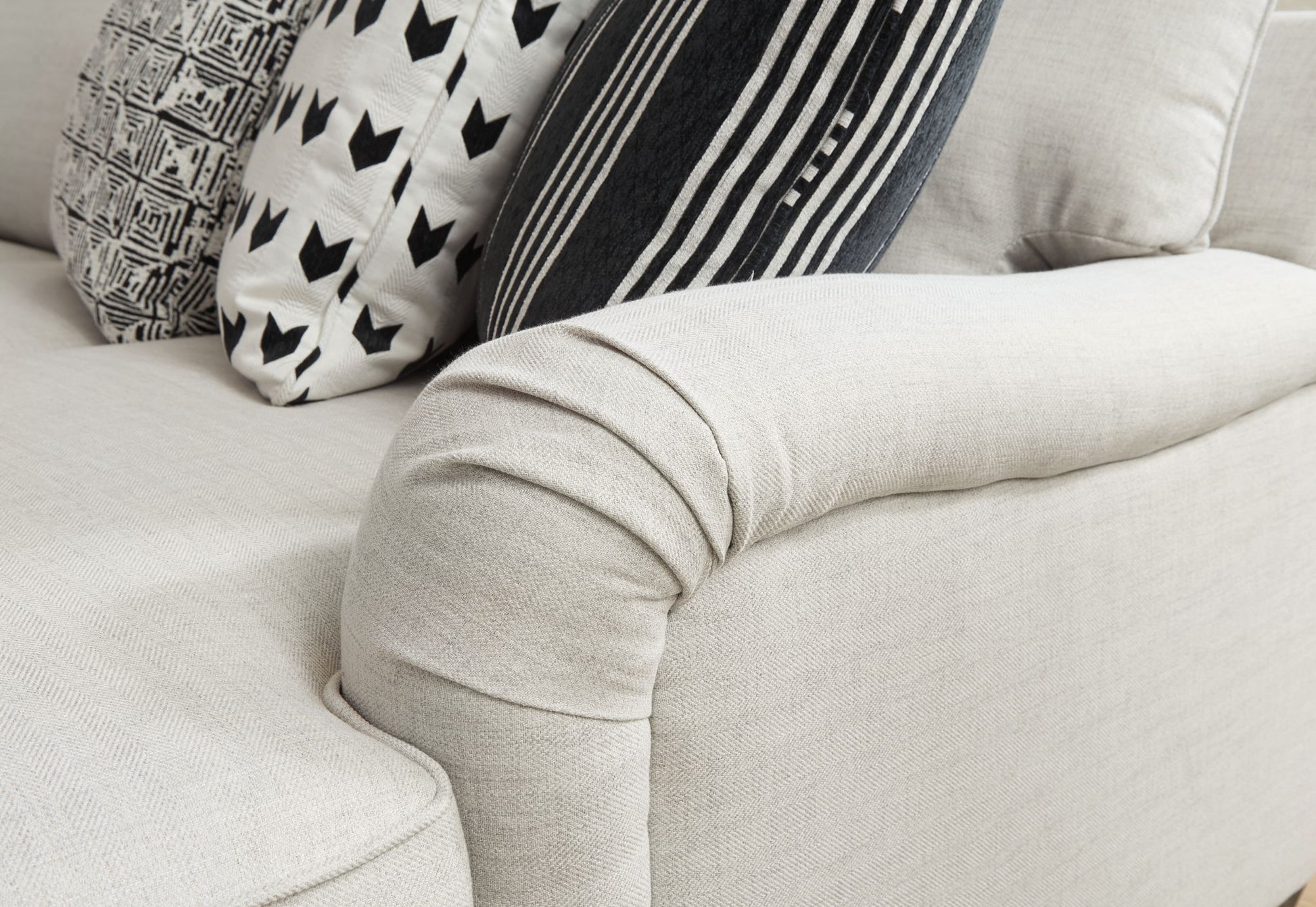Innovatively recalling classic English countryside motifs for the current age, this sectional with chaise transforms your space with a charming approach to comfort. Its dove gray upholstery acts as a clean foundation for your modern farmhouse aesthetic. Deep seating keeps carefree comfort a top priority. For added interest, accent pillows bring an on-trend pop of pattern.