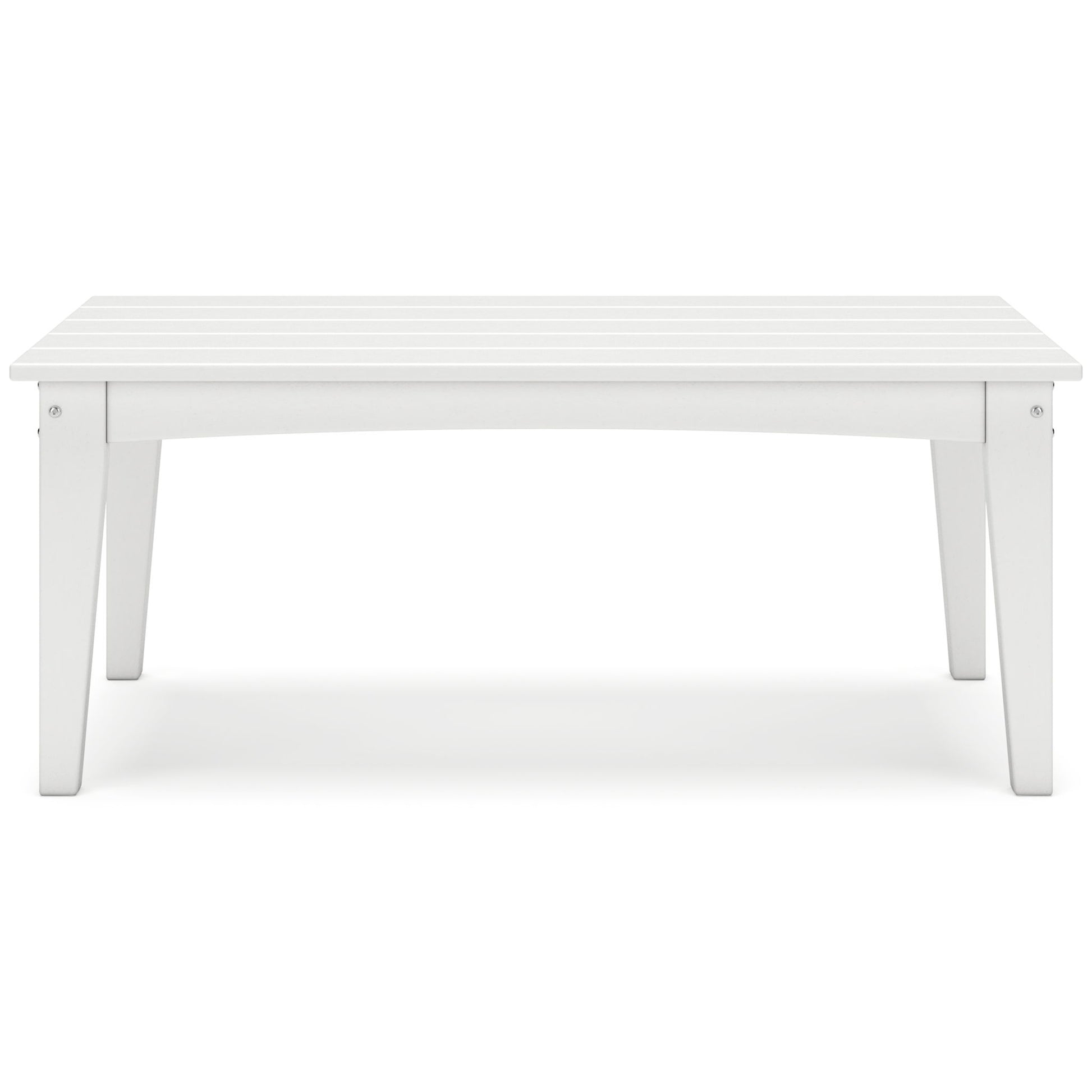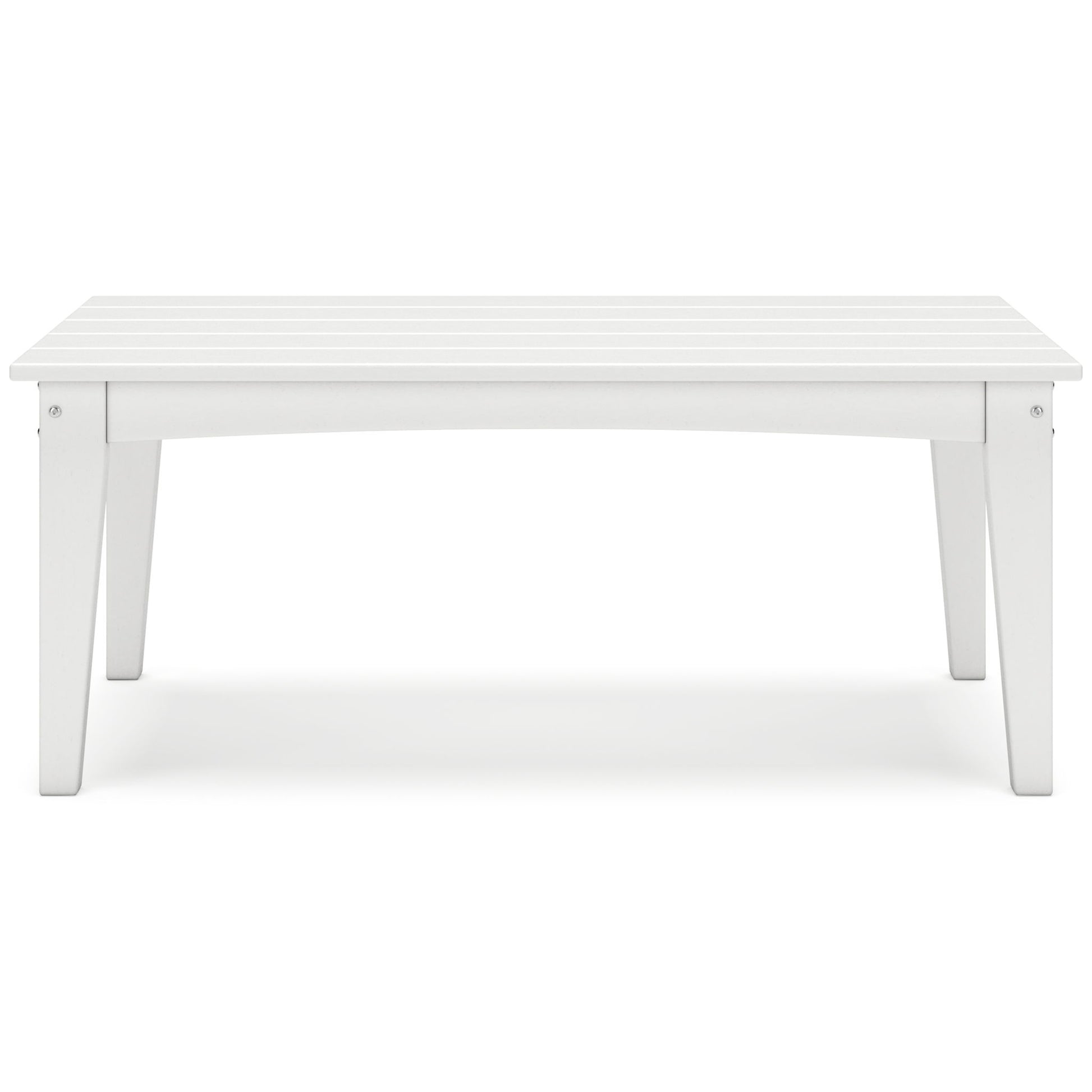 Drift into outdoor entertainment bliss with this coffee table. Dressed in a bright white for a fresh feel, it weathers sunny summer days and cozy winter nights with durable MEGA TUFF™ HDPE material. When it comes to form and function, the table's rain-shedding slatted design simply goes with the flow. Use it to hold outdoor decor, drinks or snacks.