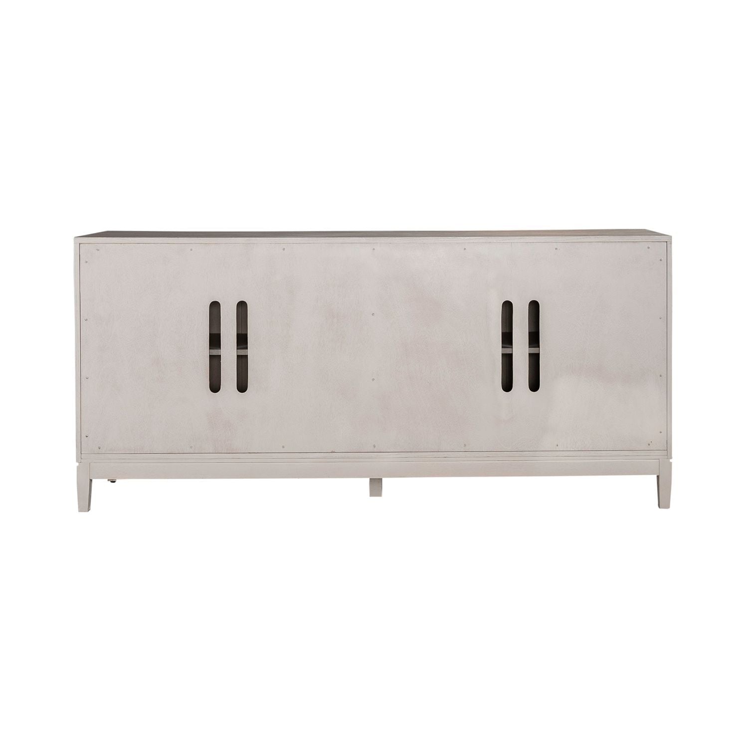 Infused with emotion, the Kinsley four door accent cabinet is sure to turn heads. Crafted with excellence using rubberwood solids with split heart white oak veneers, this piece features a Washed Taupe and Silver Champagne finish. The unique decorative pattern resin door fronts are the showstopper. Behind each set of doors is a large adjustable shelf and wire management provisions to help keep things looking neat and tidy. European soft close door hinges and magnetic door catches make this a piece to last. Transform the ordinary into the extraordinary with the Kinsley four door accent cabinet.
