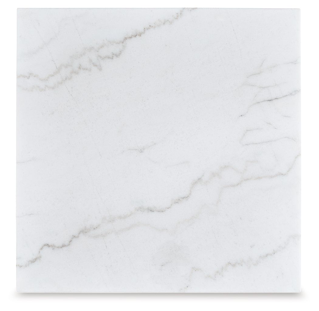 This square end table is simple in design but big on style. Finished with a trend-right grayish brown wood tone, its bold, blocky profile and natural marble top are timeless classic choices that work so well with a variety of settings. Adding to its beauty, the marble top's color variations, fissures, mineral deposits and veining are naturally formed and are not defects.