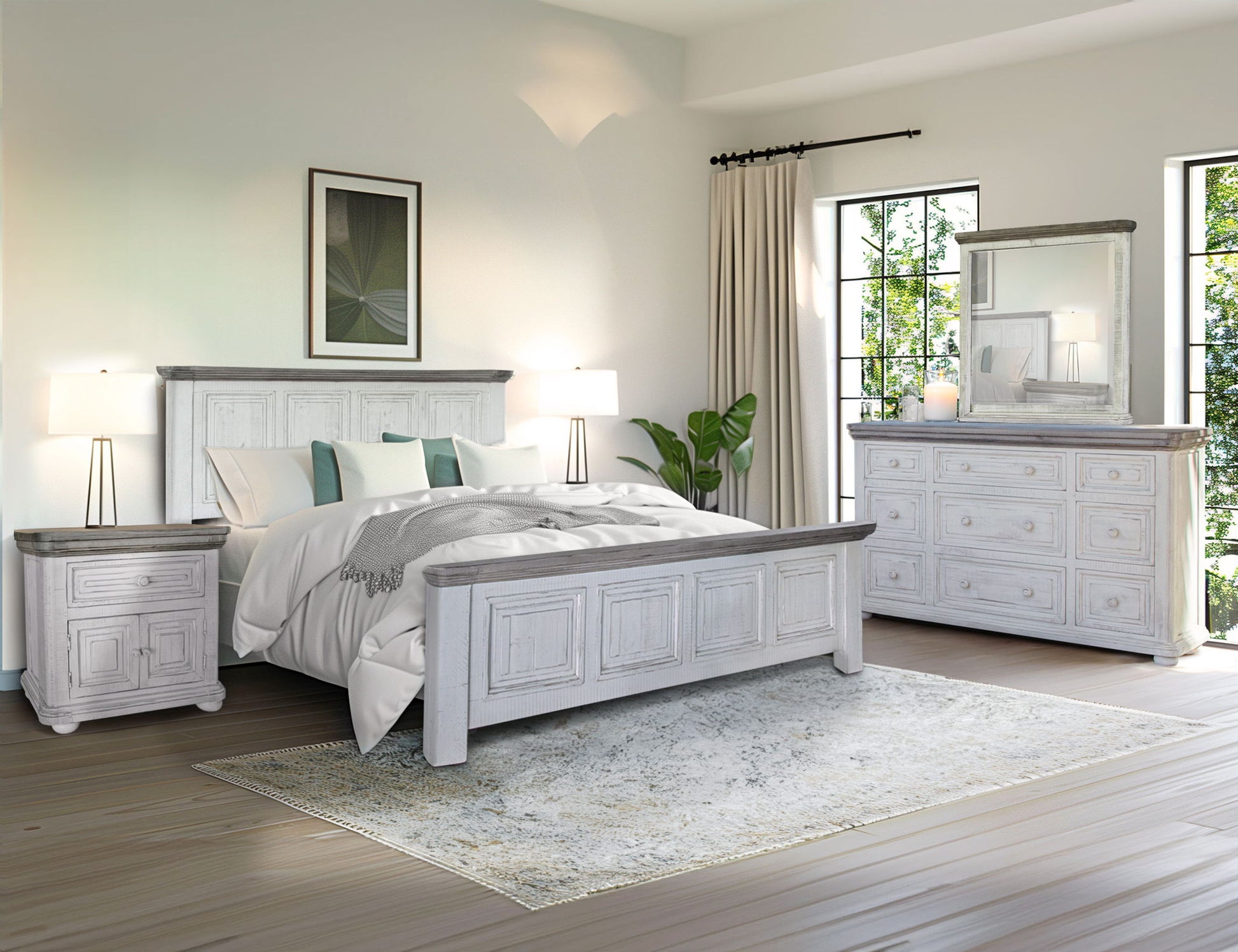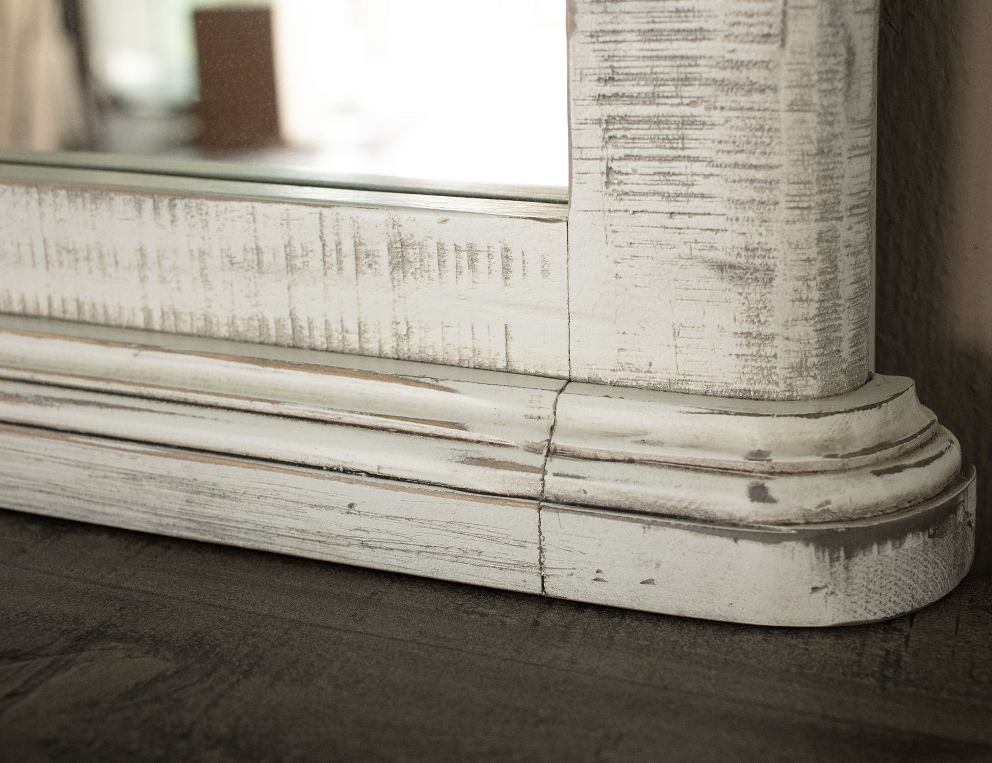 Bedroom Mirror. Introducing the transitional two-toned Luna collection. Crafted from pine wood, this collection boasts a sleek, clean-line silhouette, perfect for complementing any space.