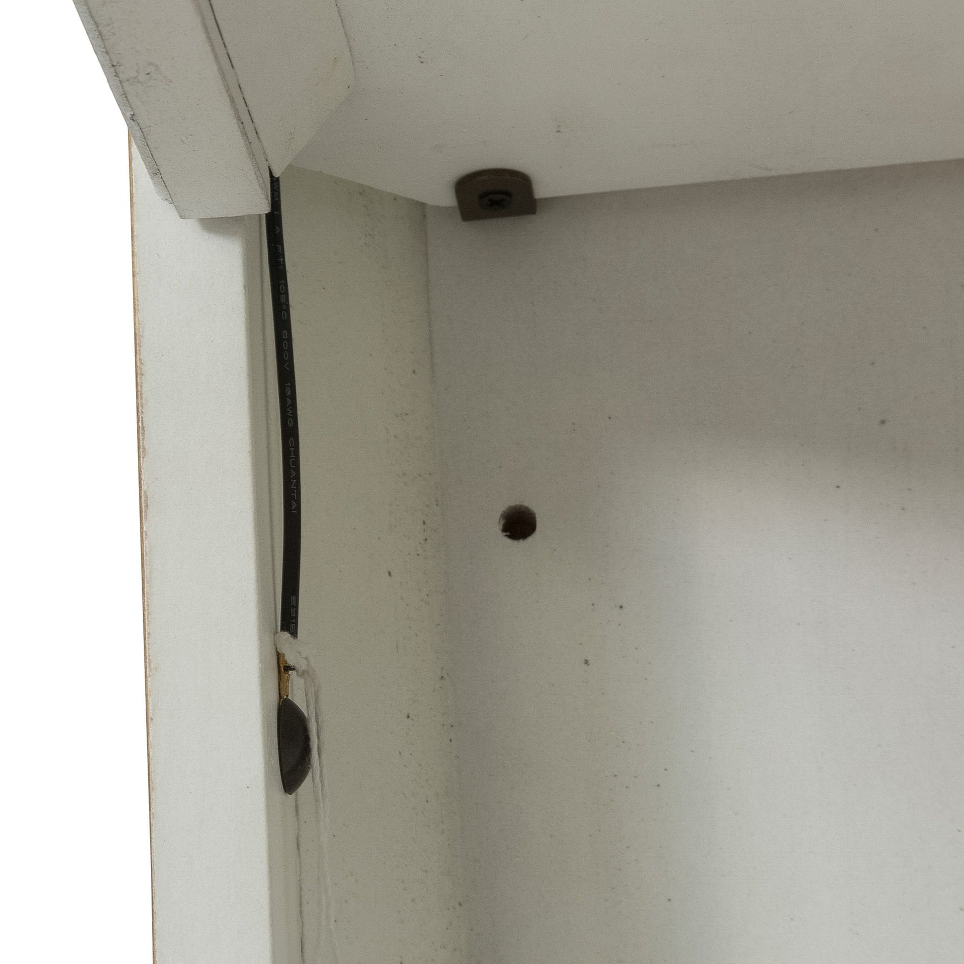 Crafted of poplar solid with birch veneers with a heavily distressed antique whit finish. Features LED touch lighting, planked back panel, wire management provisions to conceal wiring and a top shelf to display your favorite accessories. Pairs with the 74” TV console.