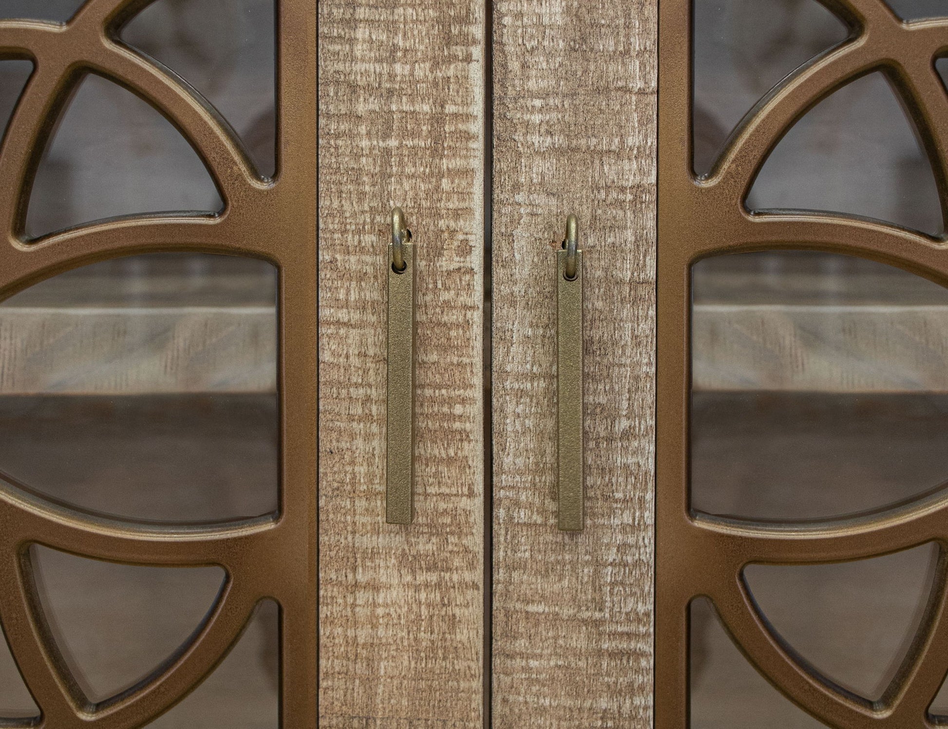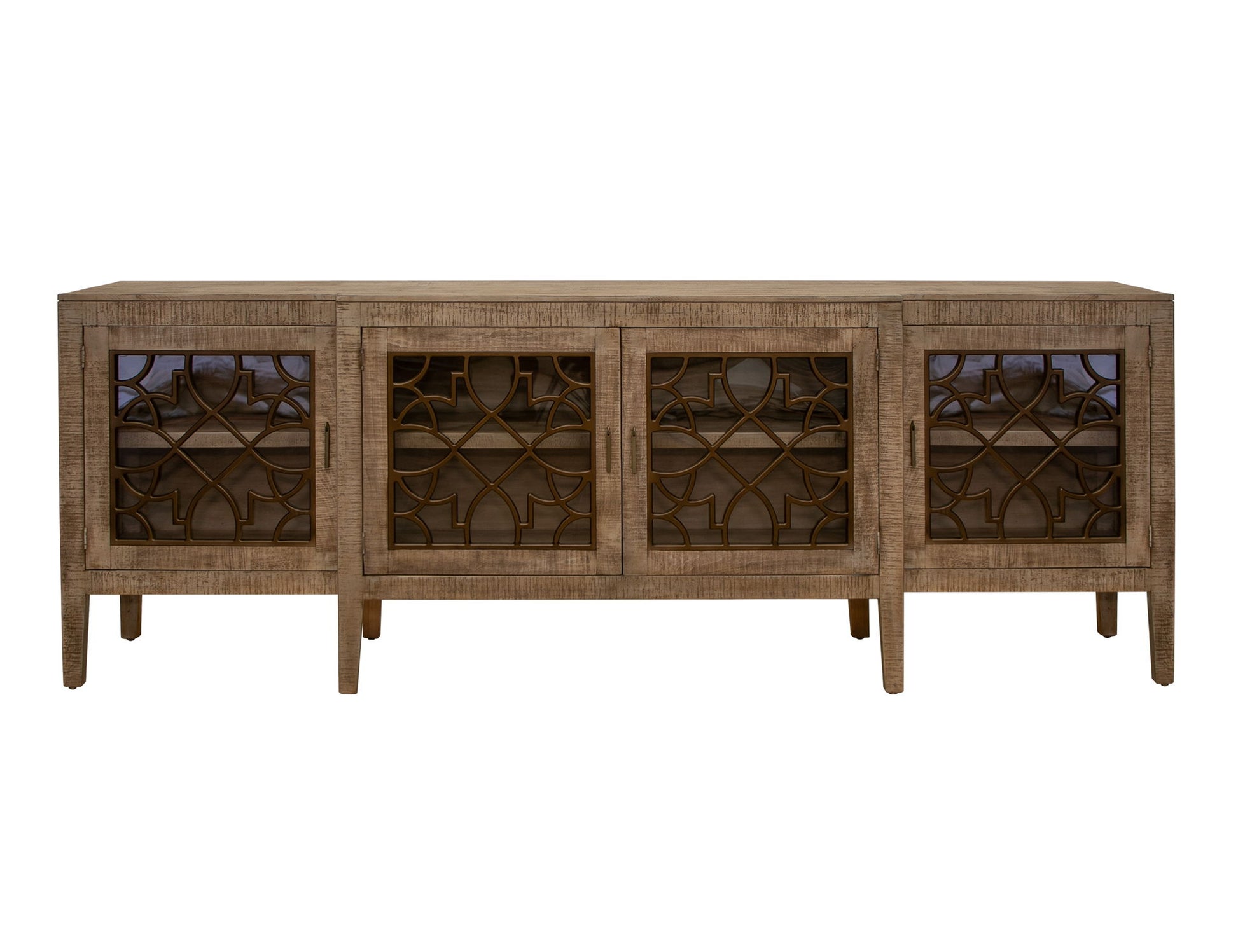 With intricate designs adorning its glass door, the Mandala Console emerges as a captivating focal point in any room. Meticulously crafted from pine wood and skillfully weathered by our artisans, this console exudes elegance and offers exceptional quality, making it a prized addition to your home.