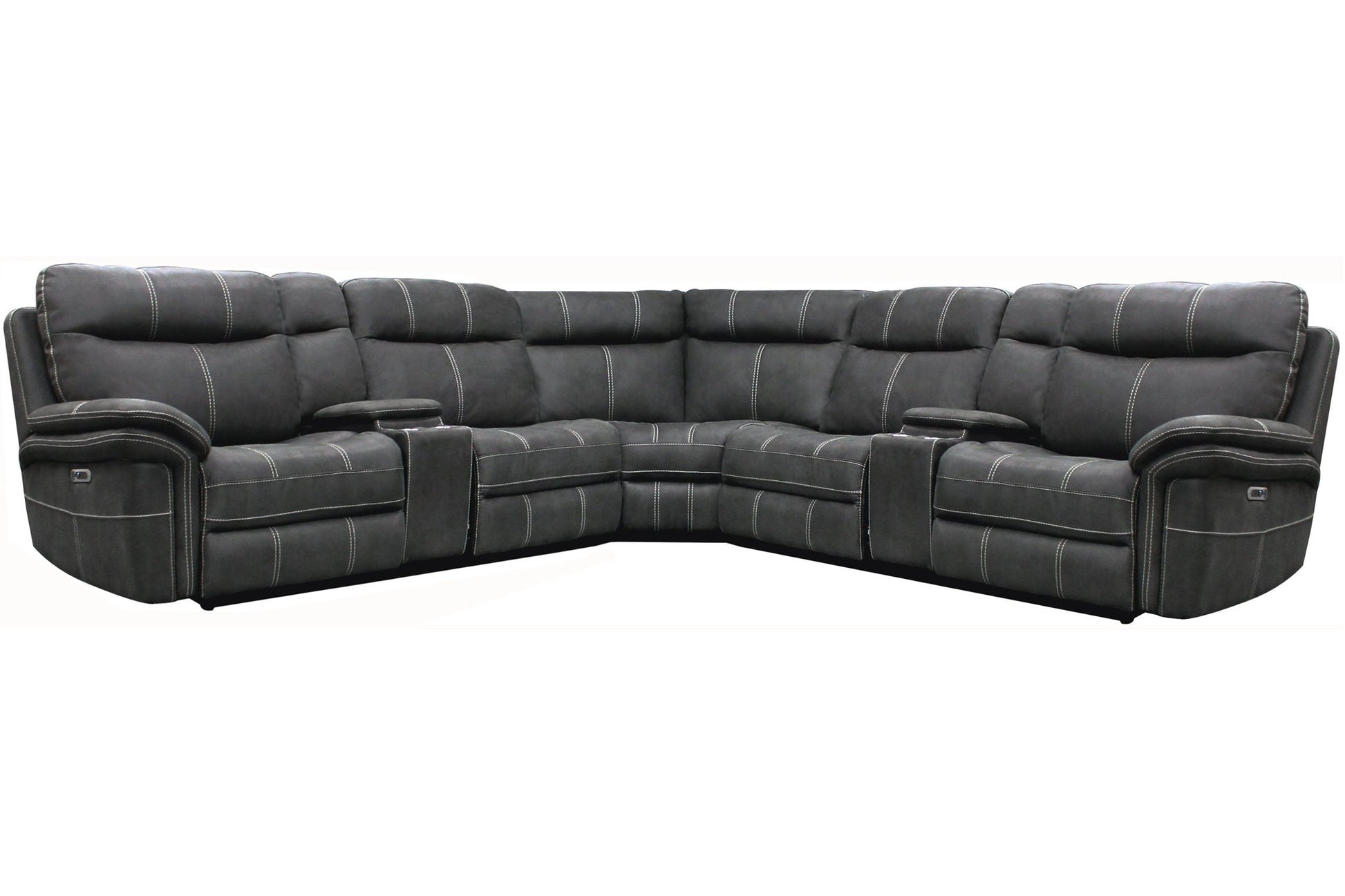 Even commercials are more tolerable when you're relaxing in the plush comfort of this sectional seating group. You'll love the luxury of its two power recliners on each end that features power headrests. Between those, you'll find an armless recliner, an armless chair, a corner wedge and a multifunctional storage console with cupholders.