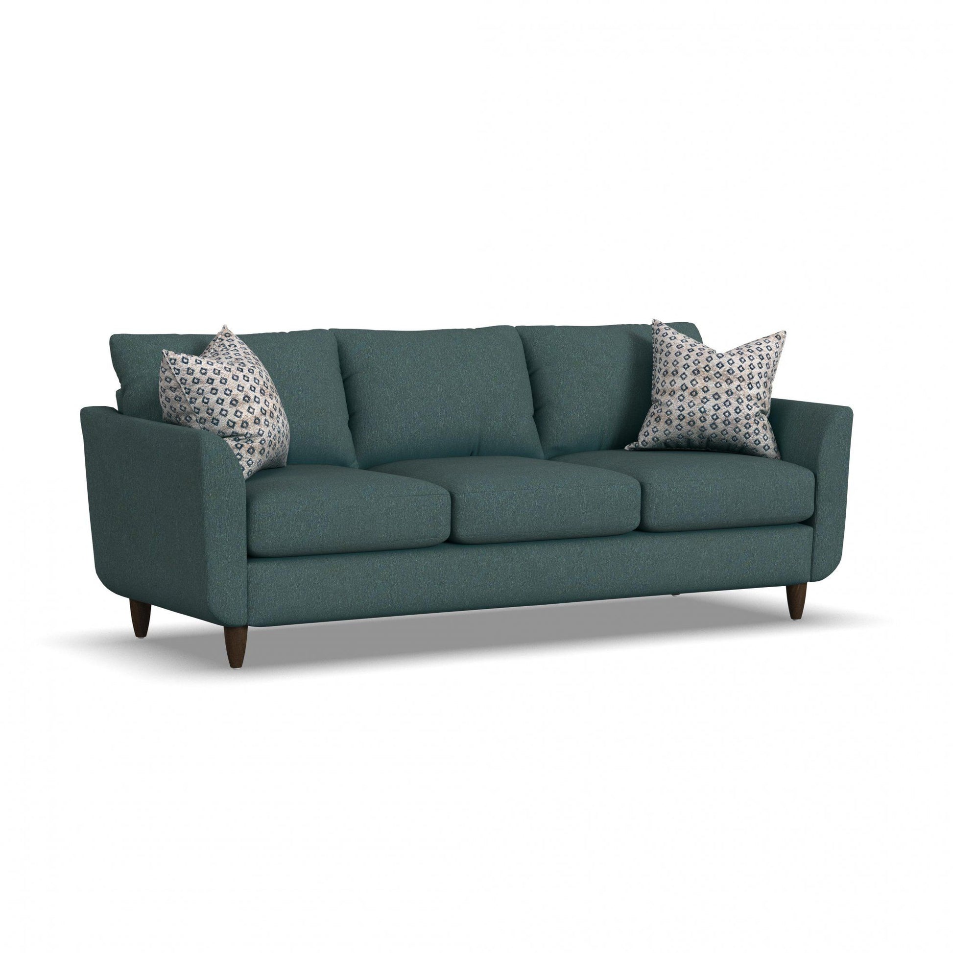 Retro Flair. Add some mid-century modern chic to your living spaces with the Mia sofa. Rounded corners, sloped flare arms and tapered legs provide a classic retro feel, while soft lines and wide, plush boxed seat cushions invite you and your guests to unwind in total comfort.