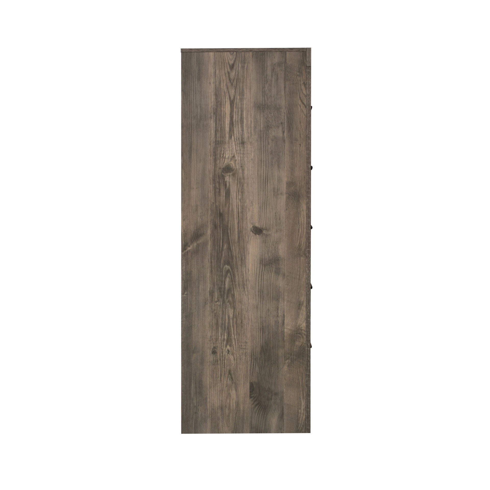 Introducing the Misty Lodge 5-Drawer Chest in Greige, a versatile and stylish storage solution for your bedroom. Crafted with durability and eco-friendliness in mind, this chest is constructed using manufactured woods and environmentally conscious decorative laminate, ensuring both beauty and quality. Its scratch-resistant rustic finish gives it a weathered, heirloom appeal while providing resistance to water, heat, and scratches, ensuring longevity and durability. Embrace the modern industrial mood with the mix of metal hardware and plank-style construction, making it a perfect fit for transitional, loft, or urban industrial settings. Experience the assurance of time-tested quality with storage drawers crafted with English dovetail joinery and smooth-rolling Kenlin center drawer glides, ensuring easy access to your belongings. Whether you need additional storage space in your bedroom or want to enhance the style of your living space, the Misty Lodge 5-Drawer Chest in Greige offers the perfect blend of functionality, durability, and style.