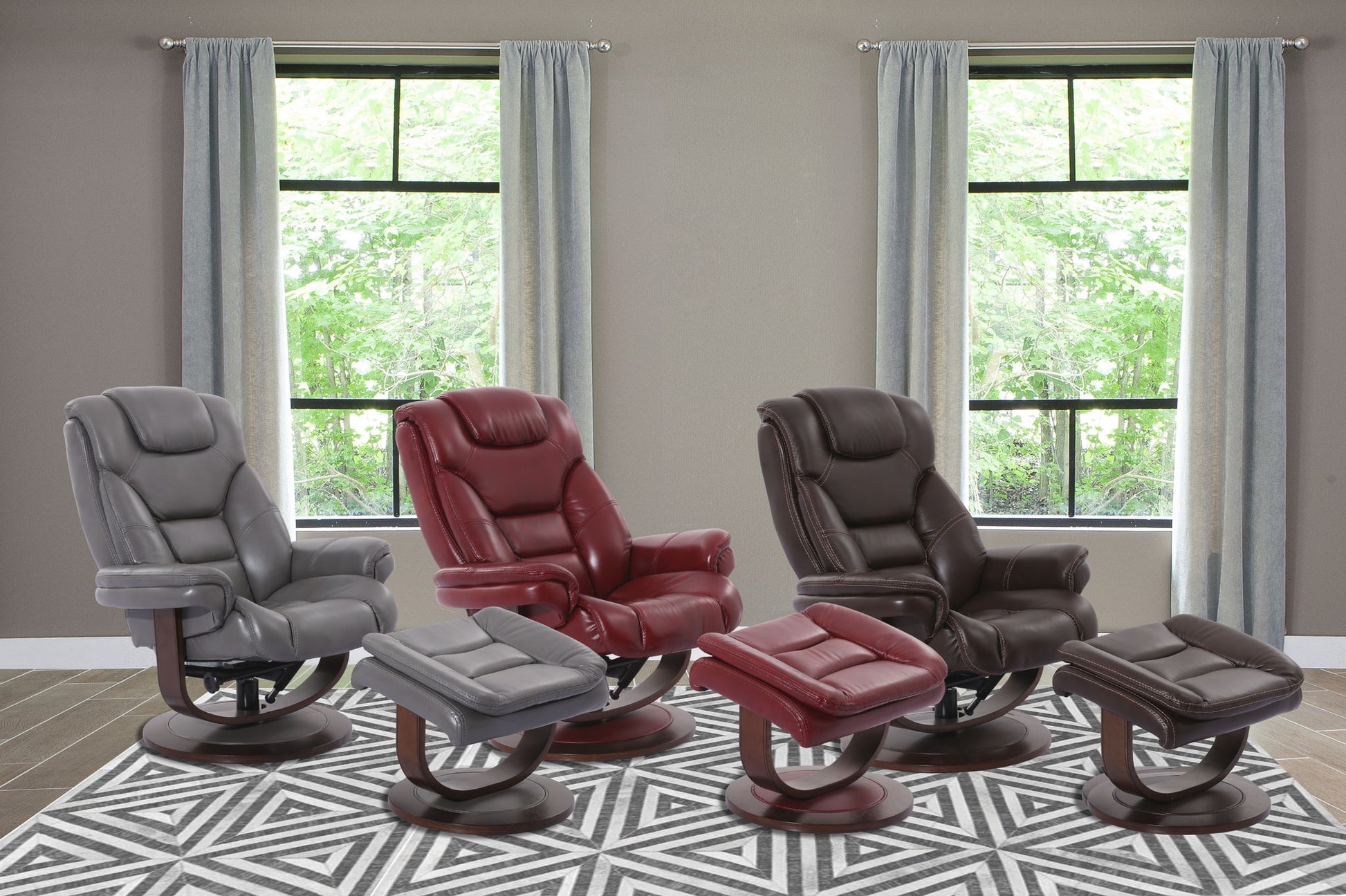 This Manual Reclining Swivel Chair and Ottoman offers an attractive silhouette and fresh styling that make it as fashionable as it is functional. You can easily swivel to join the conversation anywhere in the room and put your feet up to recline in total comfort.