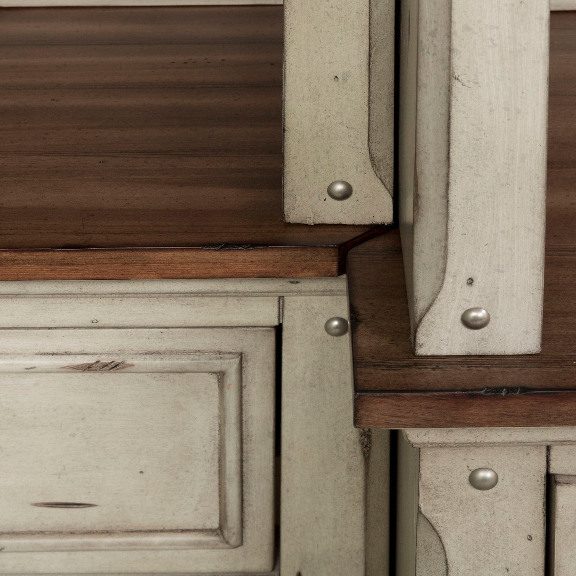 Combine traditional living and todays modern lifestyle effortlessly with the Morgan Creek entertainment center. Crafted with polar solids with pine and birch veneers, this piece features a two tone finish, wood framed doors, removeable side molding, adjustable shelving and led touch lighting to illuminate the piece. Wire management provisions effortlessly accommodates a DVD player or gaming console of choice. The warm antique finishes and artistic distressing along with grand scale, makes this a piece to be passed on to generations.