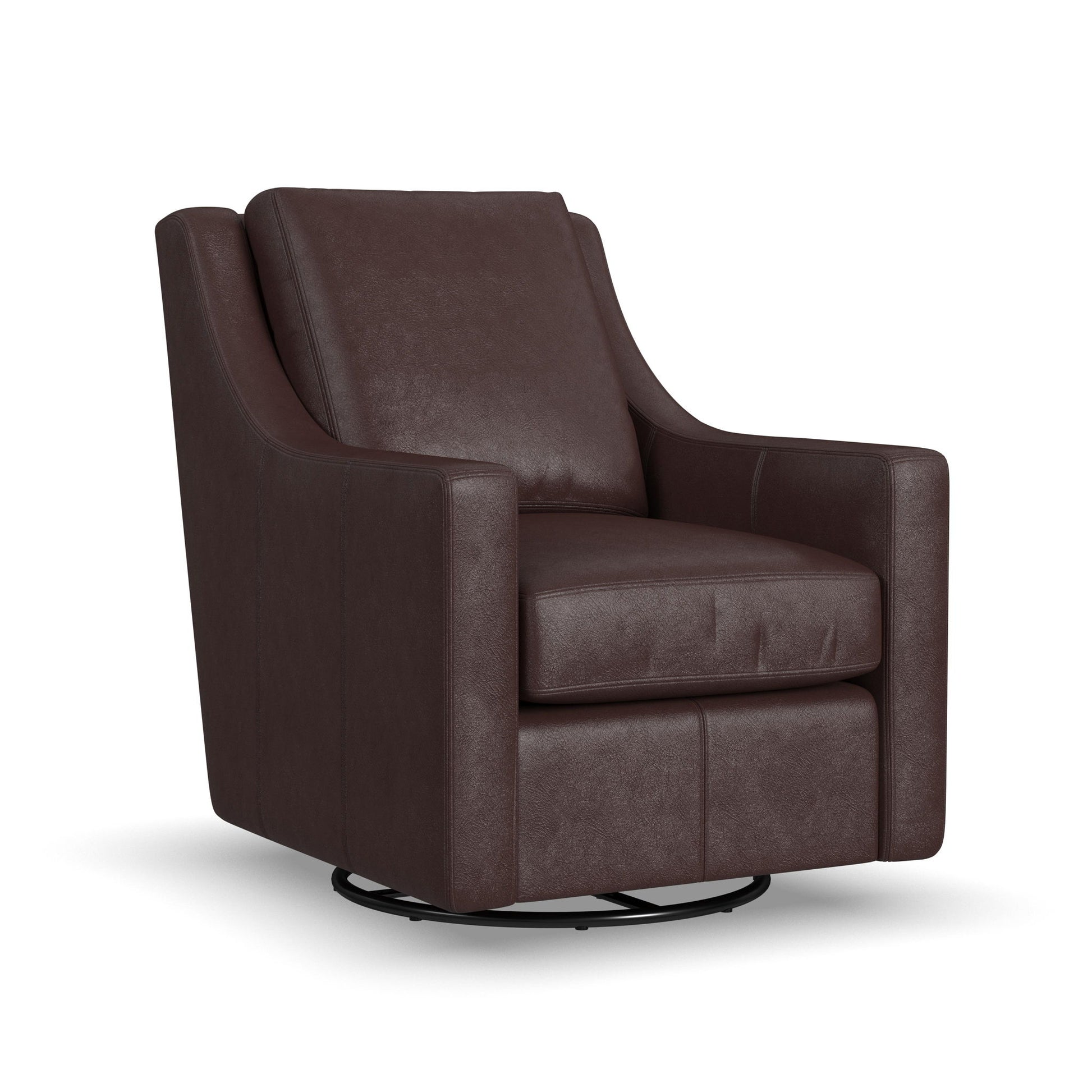 A Contemporary Style with Enveloping Comfort. Murph's curved arms slope down into the seat cushion, inviting you to do the same. Soft cushions and padded arms provide tremendous comfort, and a swivel gliding base is sure to quickly make Murph your new favorite seat in the house.