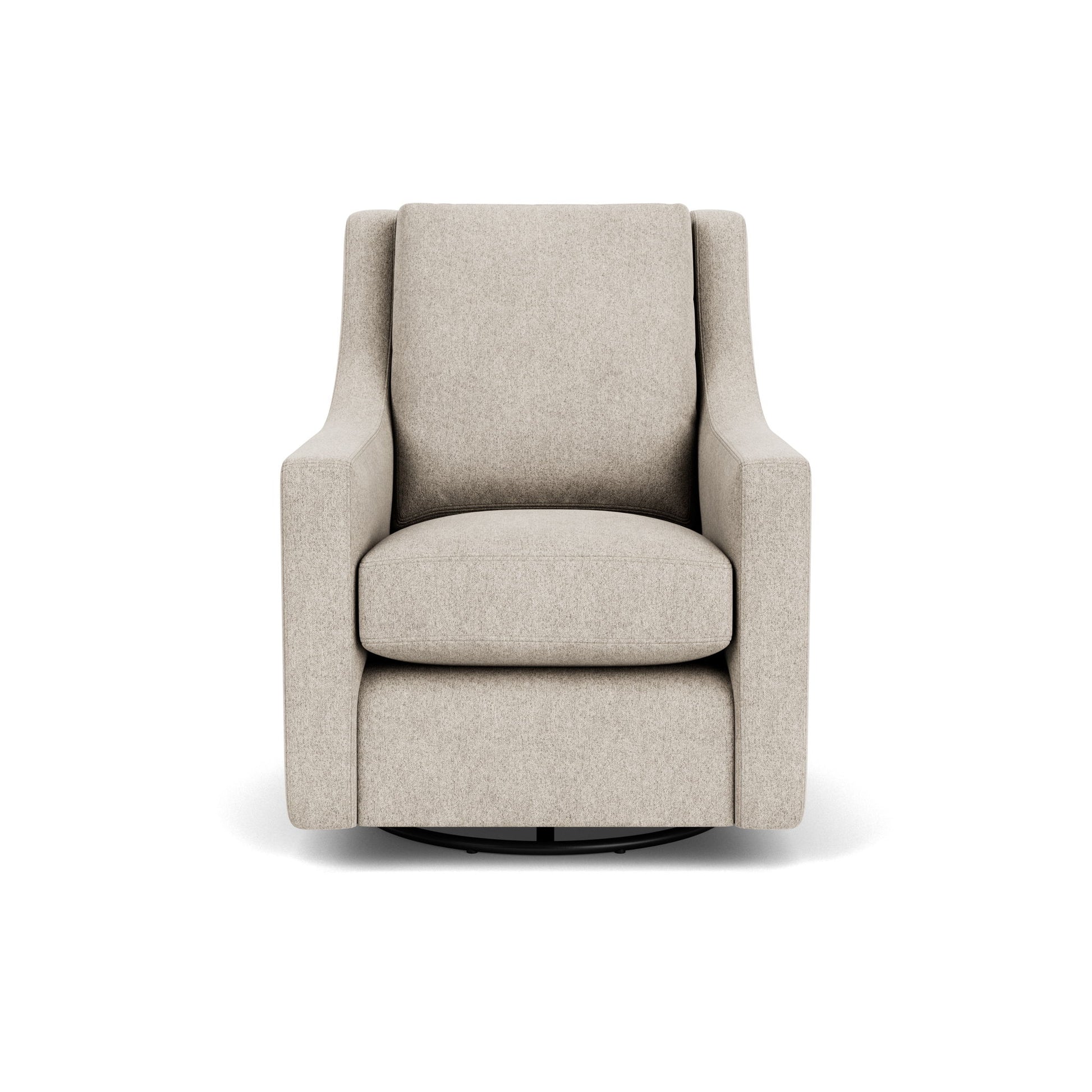 A contemporary style with enveloping comfort. Murph’s curved arms slope down into the seat cushion, inviting you to do the same. Soft cushions and subtle pillow padding on the arms provide tremendous comfort, and a swivel mechanism is sure to quickly make Murph your new favorite seat in the house.