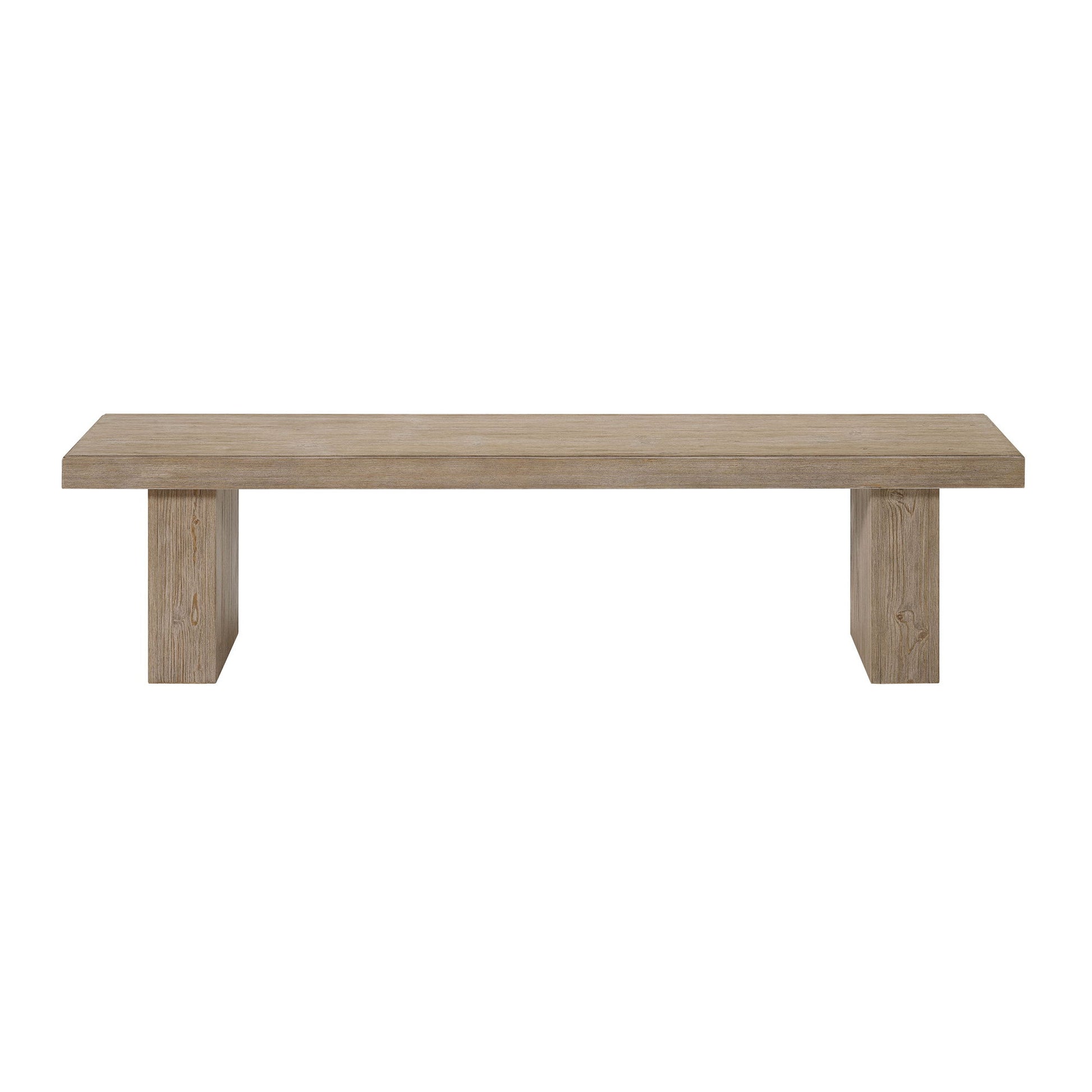 This sturdy dining group features clean, modern design elements blended with the casual nature of lightly wire brushed pine solids and veneer. Shown in a beautiful Weathered Sand finish. The cast bar pull hardware on the Sideboard has an antique pewter finish.