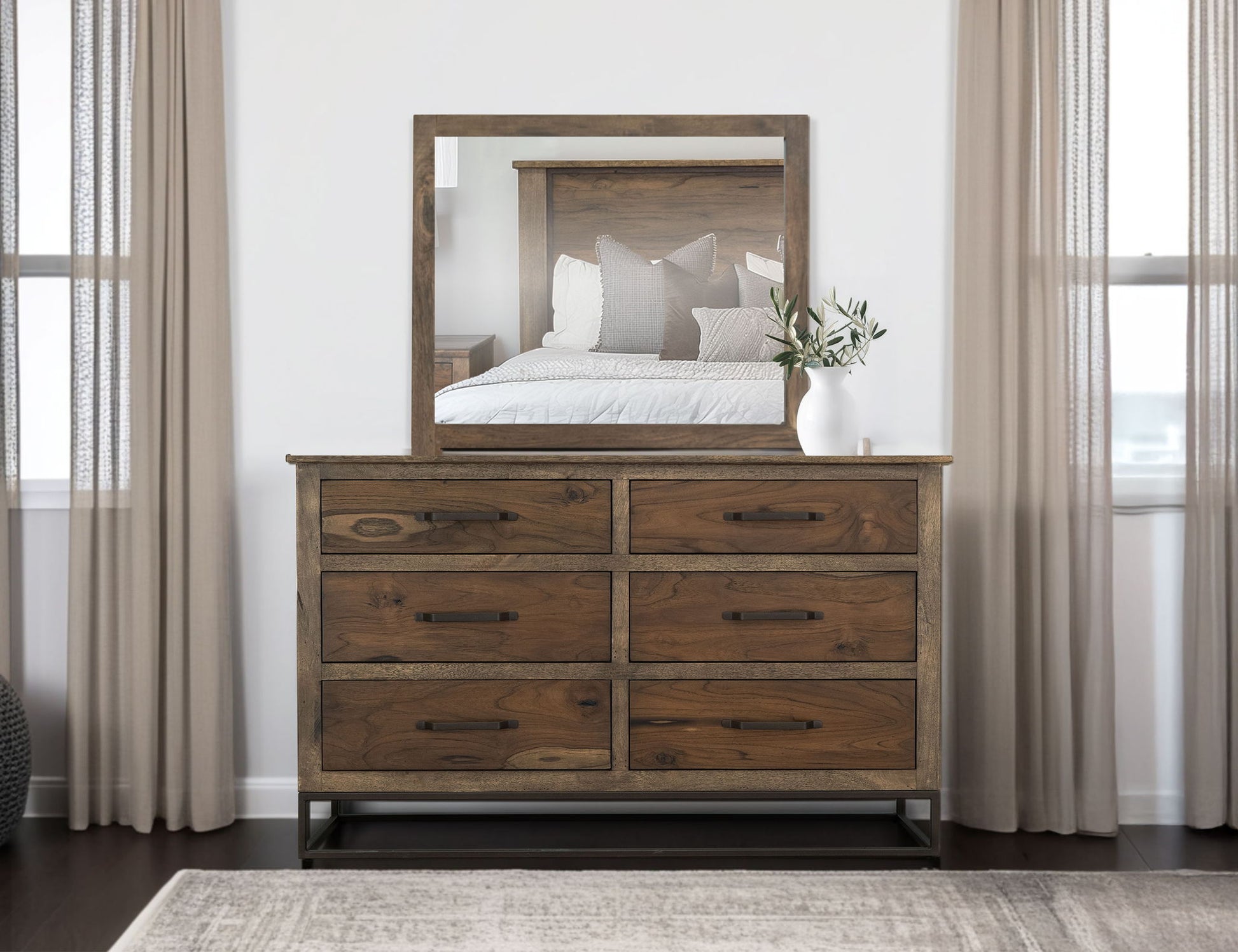 Bedroom Mirror. The Teca collection captures the essence of transitional design by seamlessly blending metal and wood elements. The mirror, crafted from sustainable mango wood, perfectly complements your bedroom set when paired with the dresser.