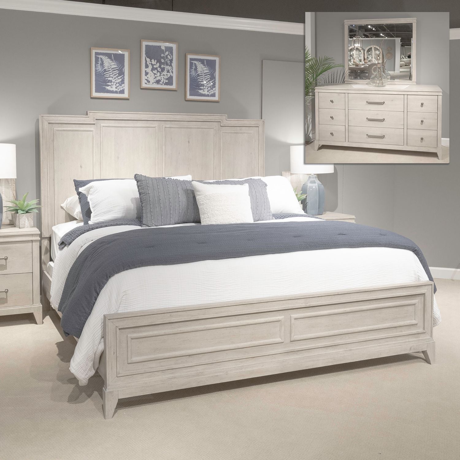 New Haven - King Panel Bed, Dresser & Mirror - White