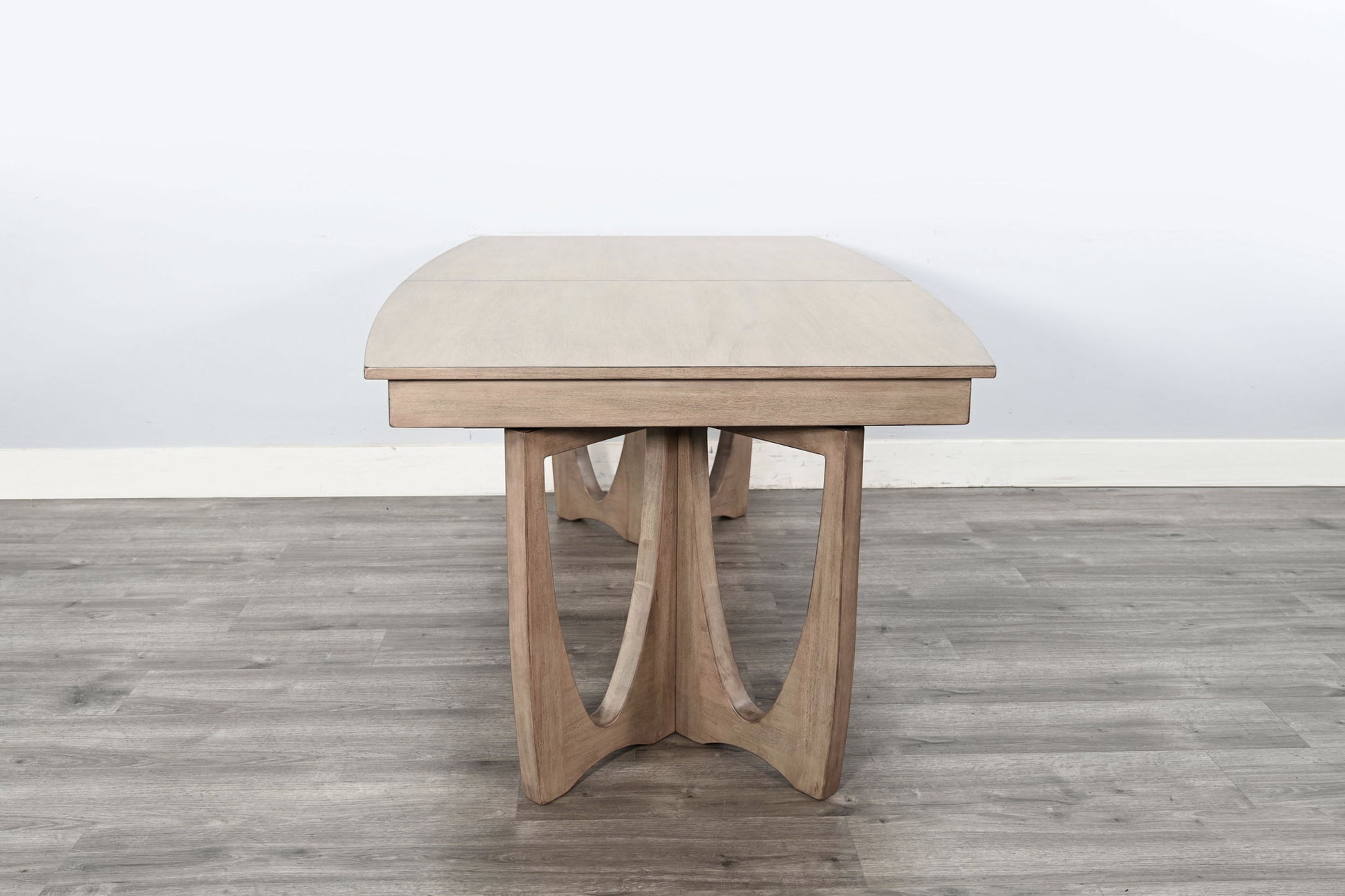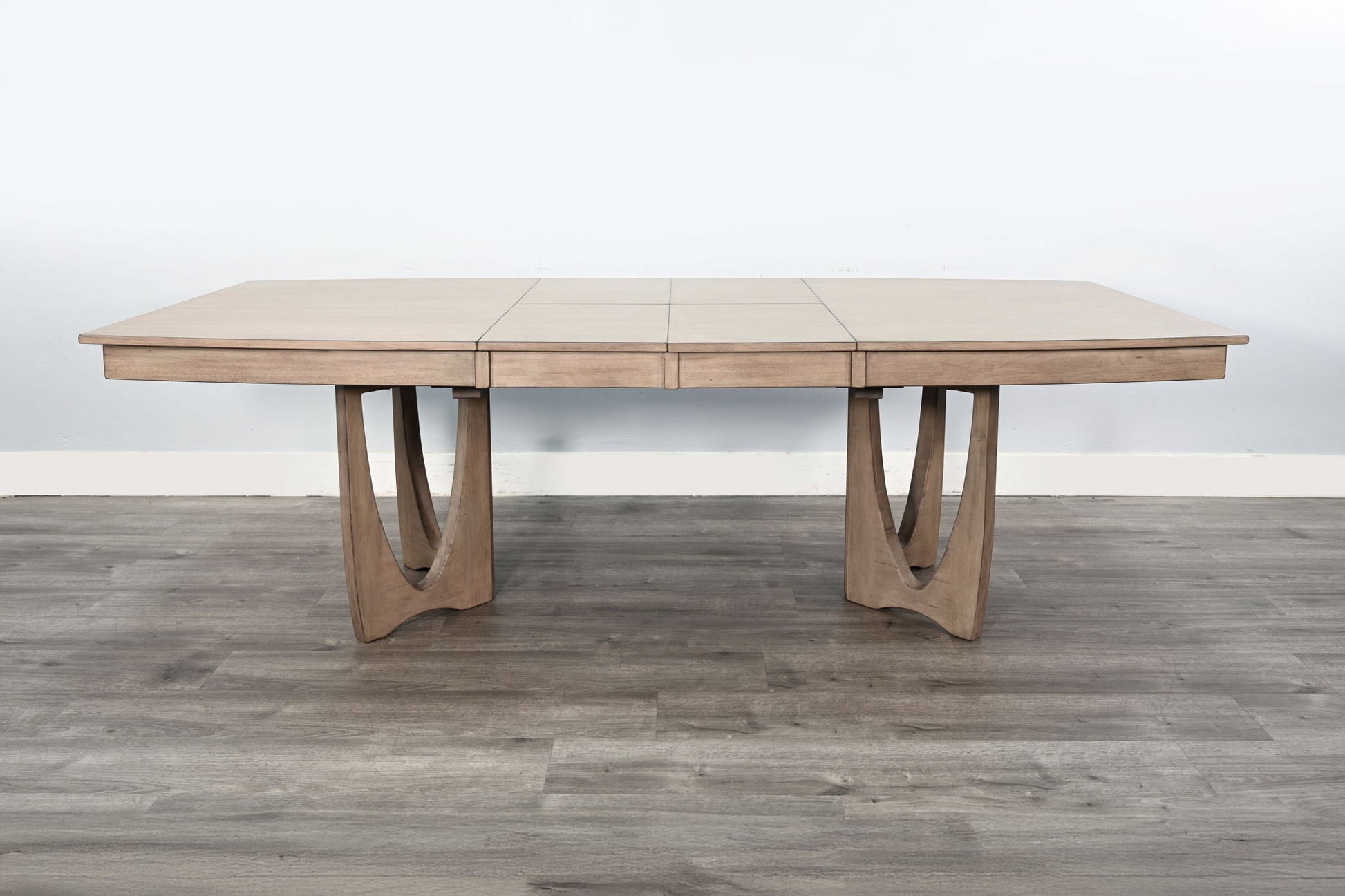 This elegant piece seamlessly combines a rich, coffee-inspired hue with the timeless beauty of Mahogany wood, creating a warm and inviting centerpiece for your dining area. The table features a convenient extension leaf, providing flexibility for accommodating gatherings of various sizes. Its unique shaped legs add a touch of sophistication, making a statement in any dining space.