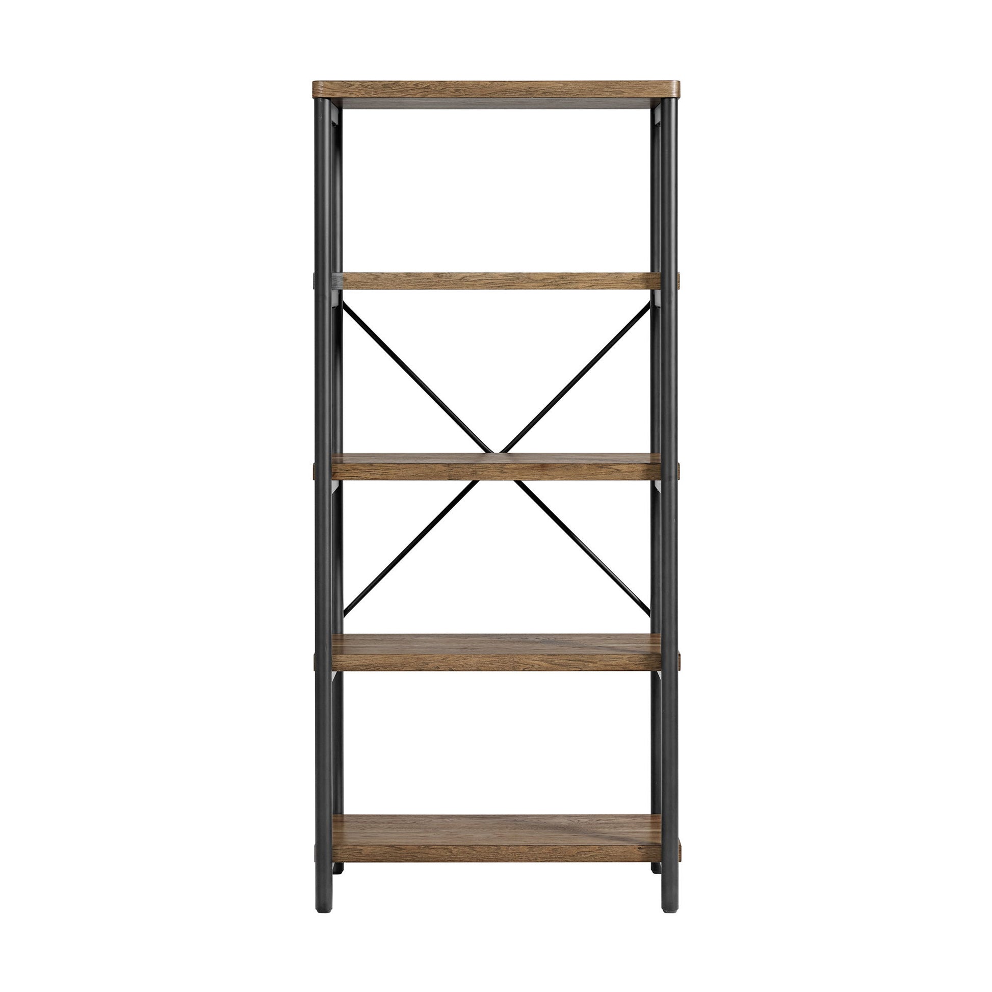 The Industrial Modern style of the Norcross Home Office group blends the natural beauty of its rustic veneer with its clean lines and abundant metal accents throughout. This collection features custom designed wood and metal hardware and is finished in a warm and inviting hickory finish.