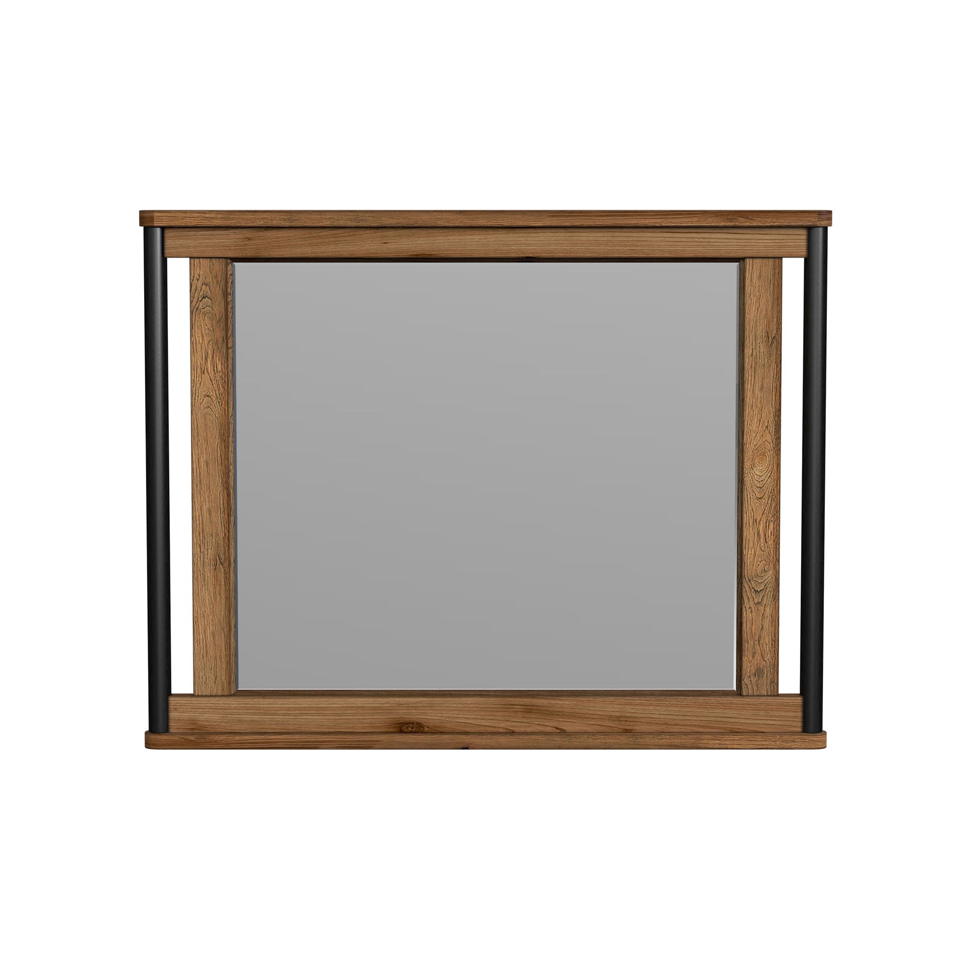 The Industrial Modern style of the Norcross Bedroom group blends the natural beauty of its rustic veneer with its clean lines and abundant metal accents throughout. This bedroom collection features custom designed wood and metal hardware and is finished in a warm and inviting hickory finish.
