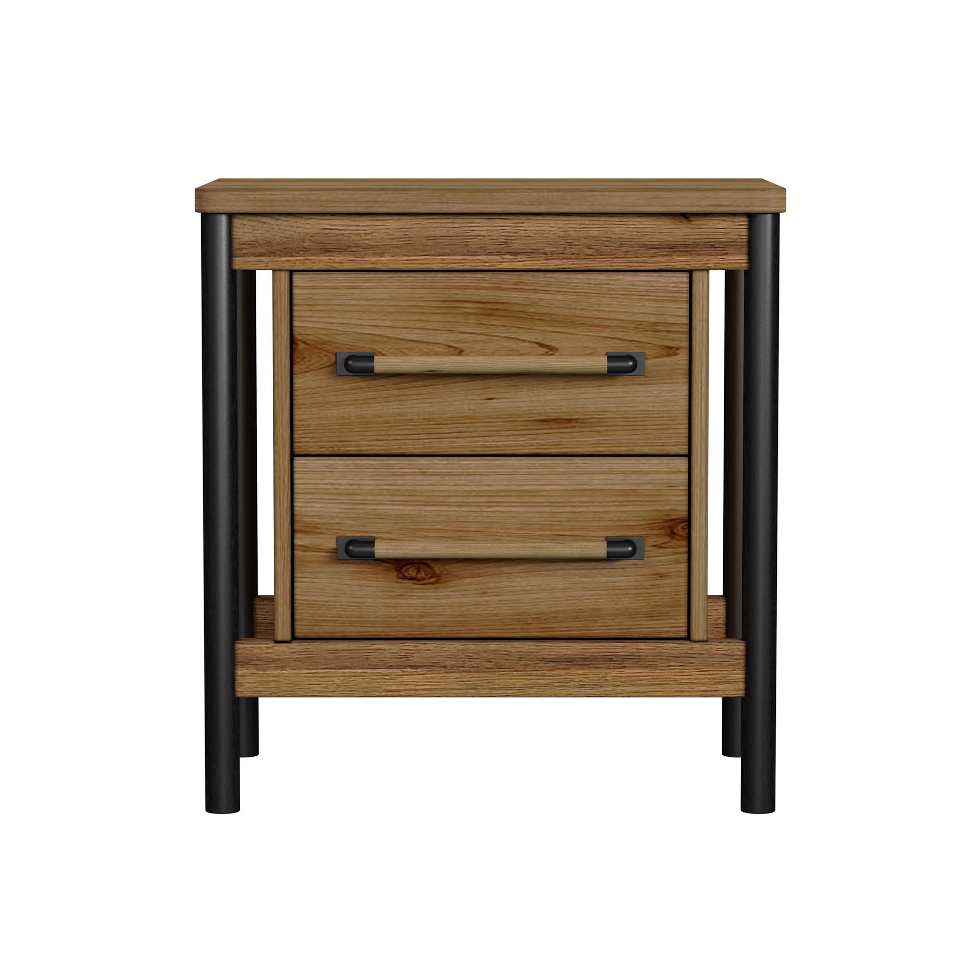 The Industrial Modern style of the Norcross Bedroom group blends the natural beauty of its rustic veneer with its clean lines and abundant metal accents throughout. This bedroom collection features custom designed wood and metal hardware and is finished in a warm and inviting hickory finish.