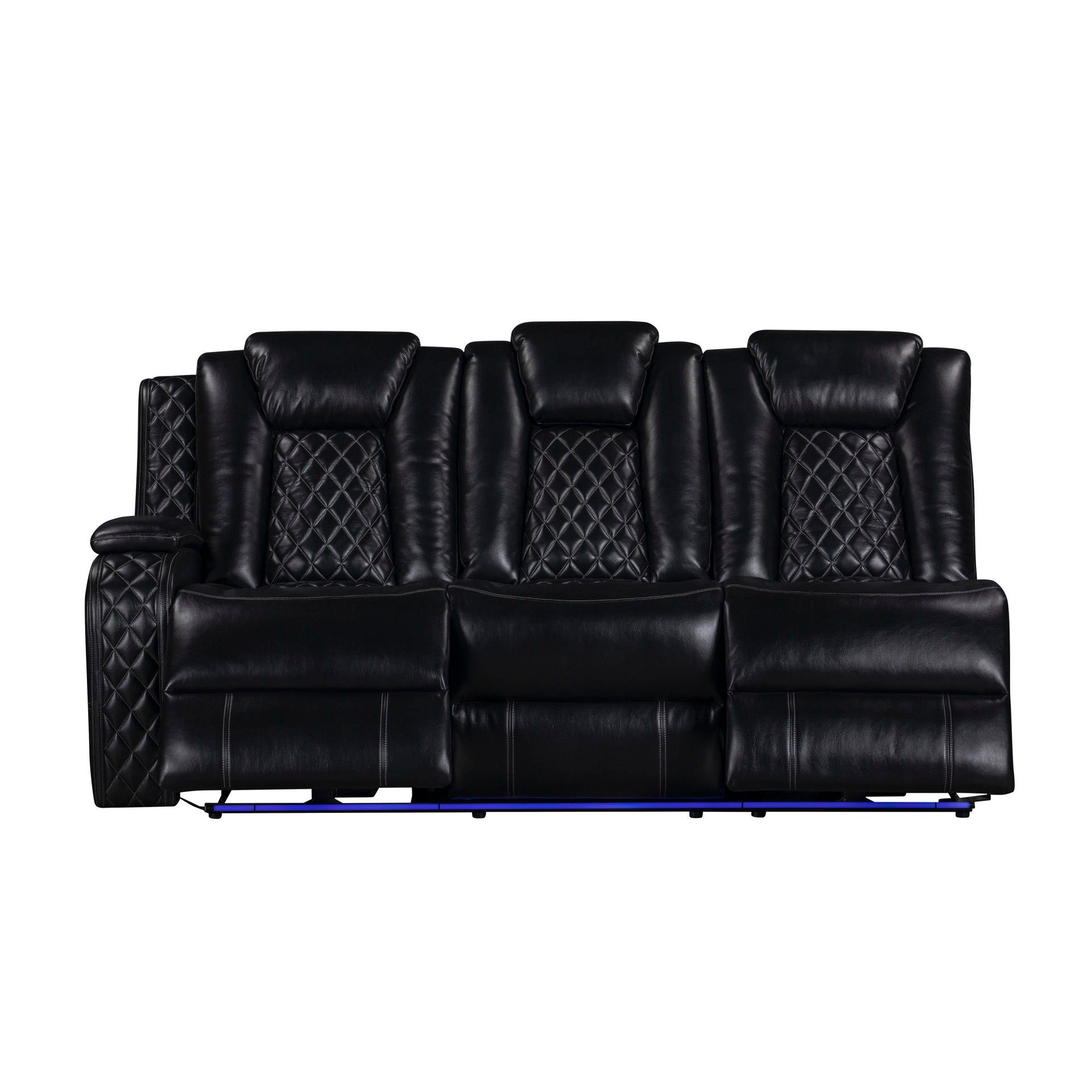 - Mood Lighting: Enhance your experience with theater lighting that accents the base of the sofa and reading lamps located under the center headrest. The drop-down center back cushion houses two wireless charging pads, and convenient USB charging ports are available to power up your devices.