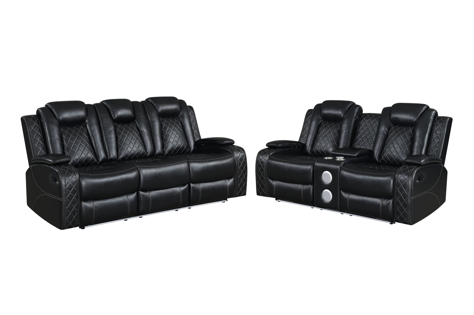 The Orion II Reclining Sofa Set offers both comfort and functionality. Crafted with a sturdy frame of hardwoods and manufactured wood, it promises durability and strength. The upholstery, made of 80% polyester and 20% PU, provides a soft, breathable seating experience. Smooth reclining mechanisms allow for easy adjustments, letting you relax at your ideal angle. High-density foam and pocket coil cushions ensure support and long-lasting comfort. Its sleek design features white contrast stitching, adding a stylish touch, while lift-up pillowed arms hide storage compartments for added practicality. The center console includes a storage cubby, drink holders, and USB ports, with Bluetooth speakers and theater lighting for a complete entertainment experience.