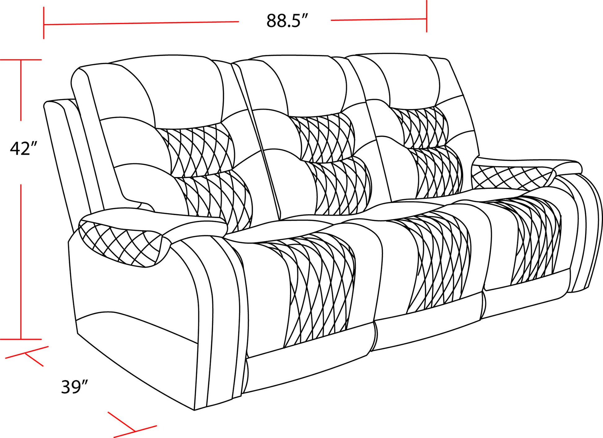 - Distinctive diamond quilt pattern with nailhead accents