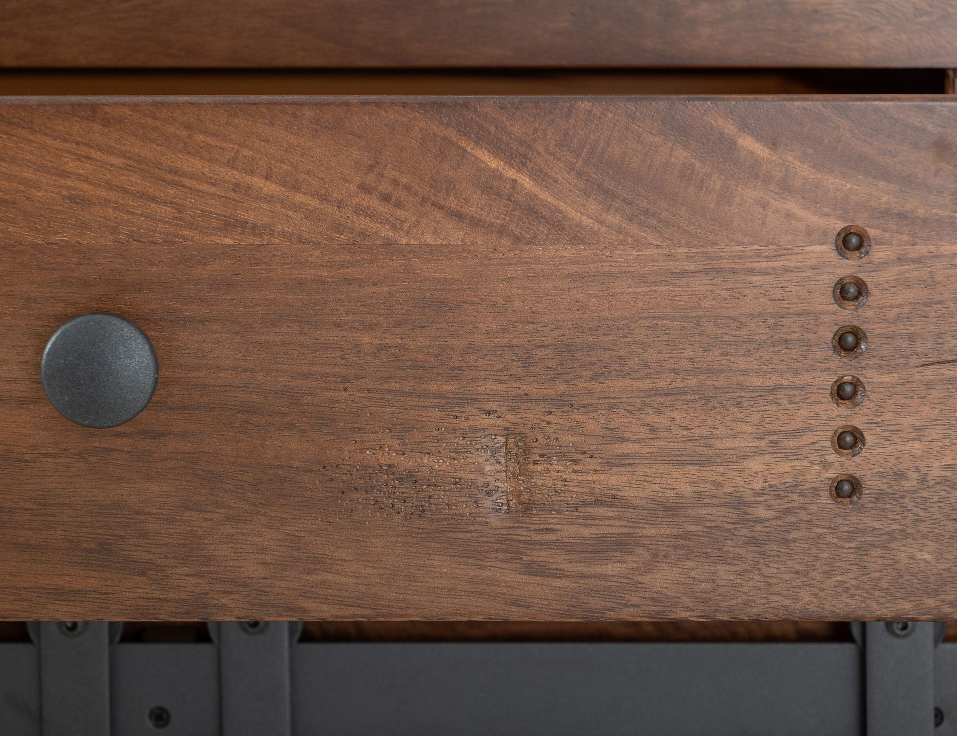 - Parota wood on top and sustainable mango wood on the rest of the case piece.