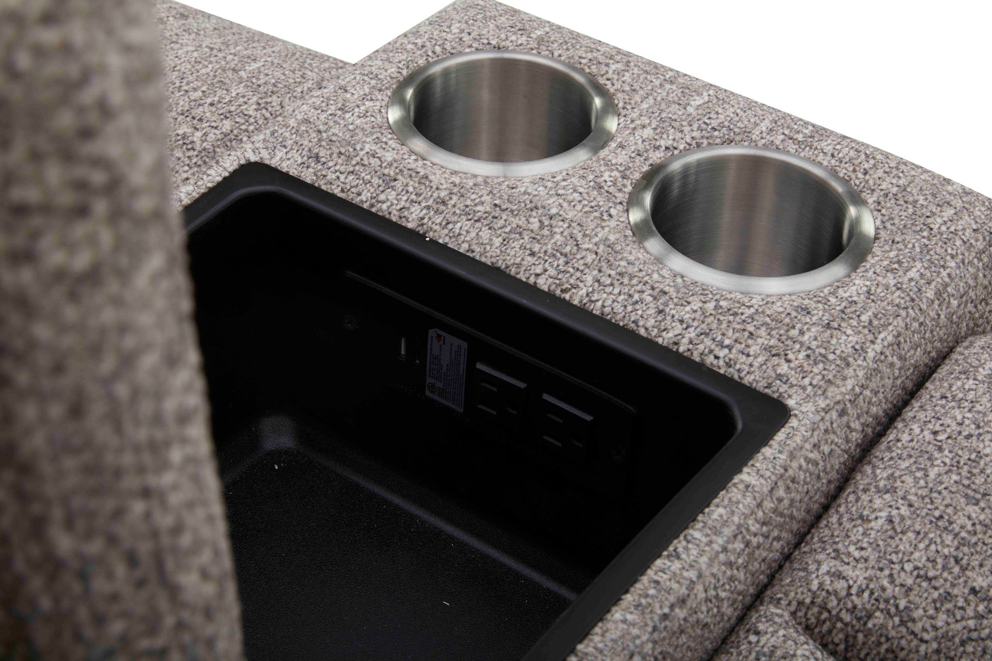 Penfield offers a remote control for a zero-gravity recline, power headrest, lumbar support, and heat and massage features for added relaxation. Made from durable and soft 100% polyester fabric, the Penfield has stylish two-tiered track arms. The sofa includes a drop-down table with lights, a pop-up power station, cup holders, and a Bluetooth speaker. With comfortable bucket seats, the Penfield combines style and technology for a modern look for the home.