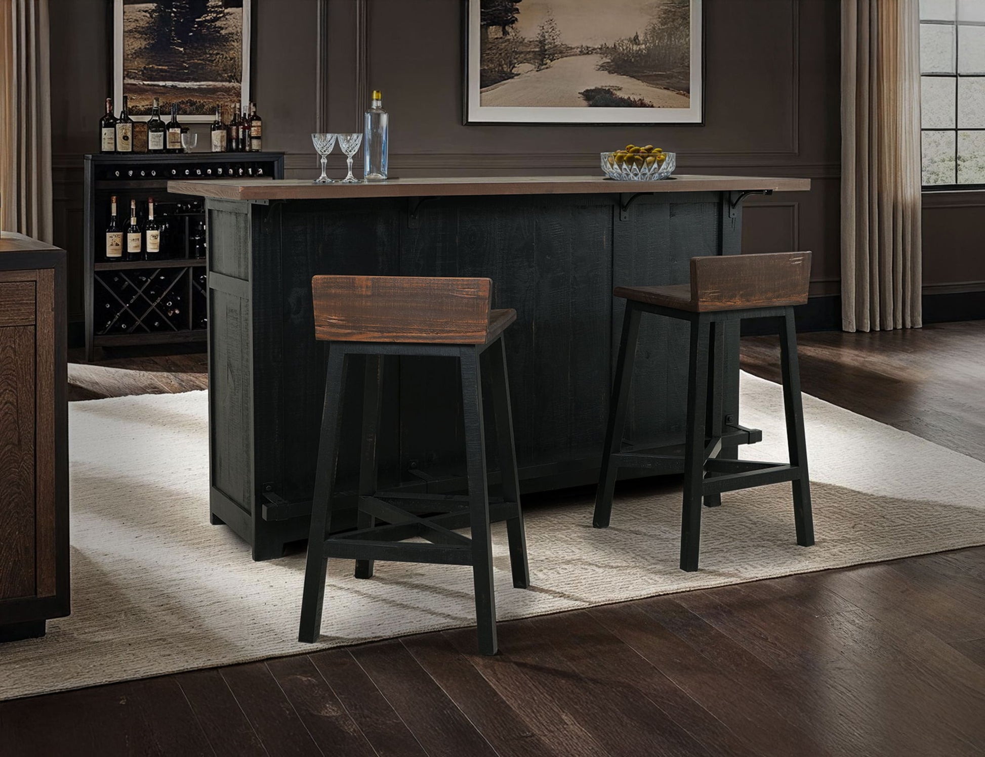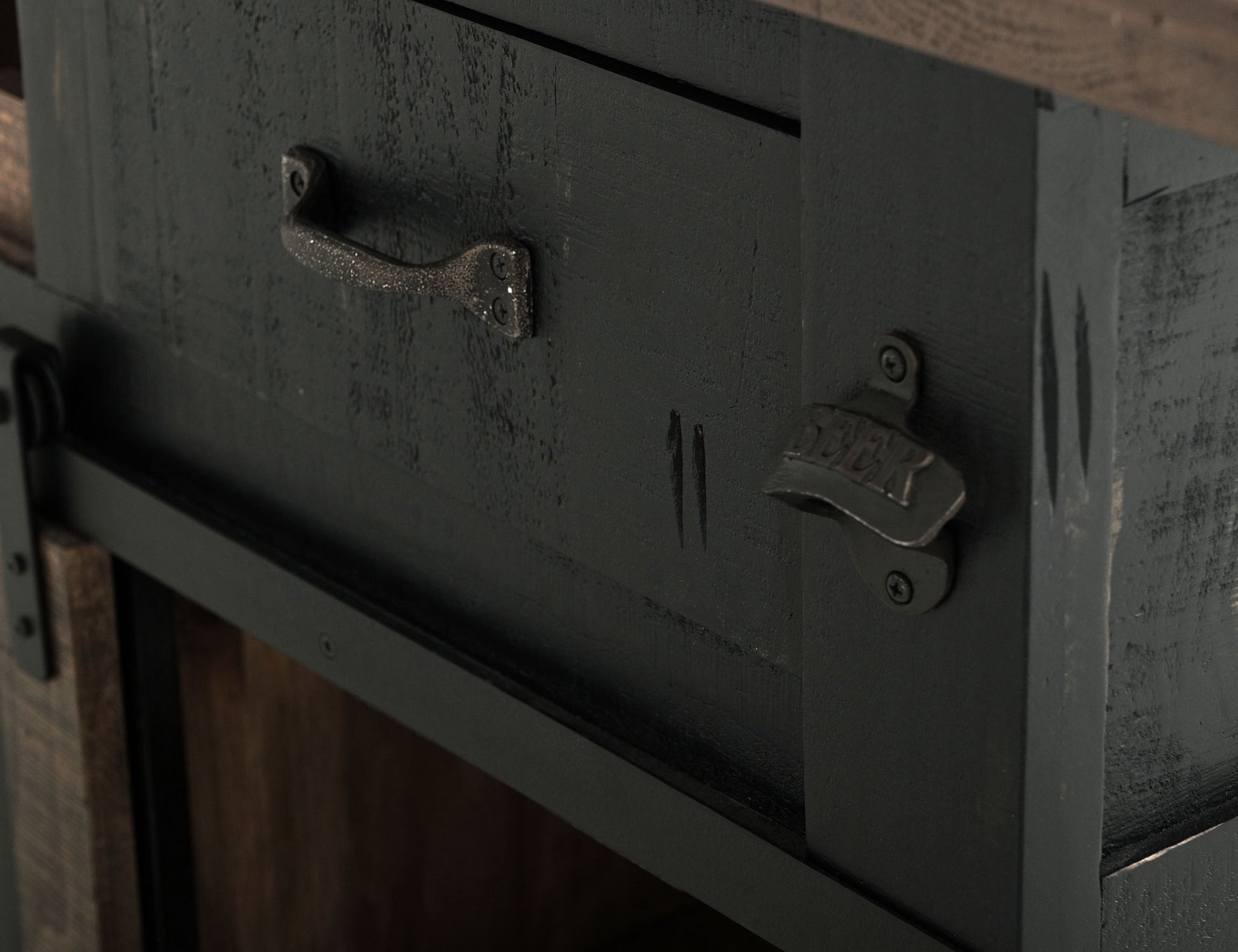 2 Drawer, 2 Shelves & 2 Doors Bar. Introducing our Pueblo collection, crafted from solid pine wood. This rustic collection is the perfect addition to bring your dream space to life. It features a hand-distressed finish on the tops.