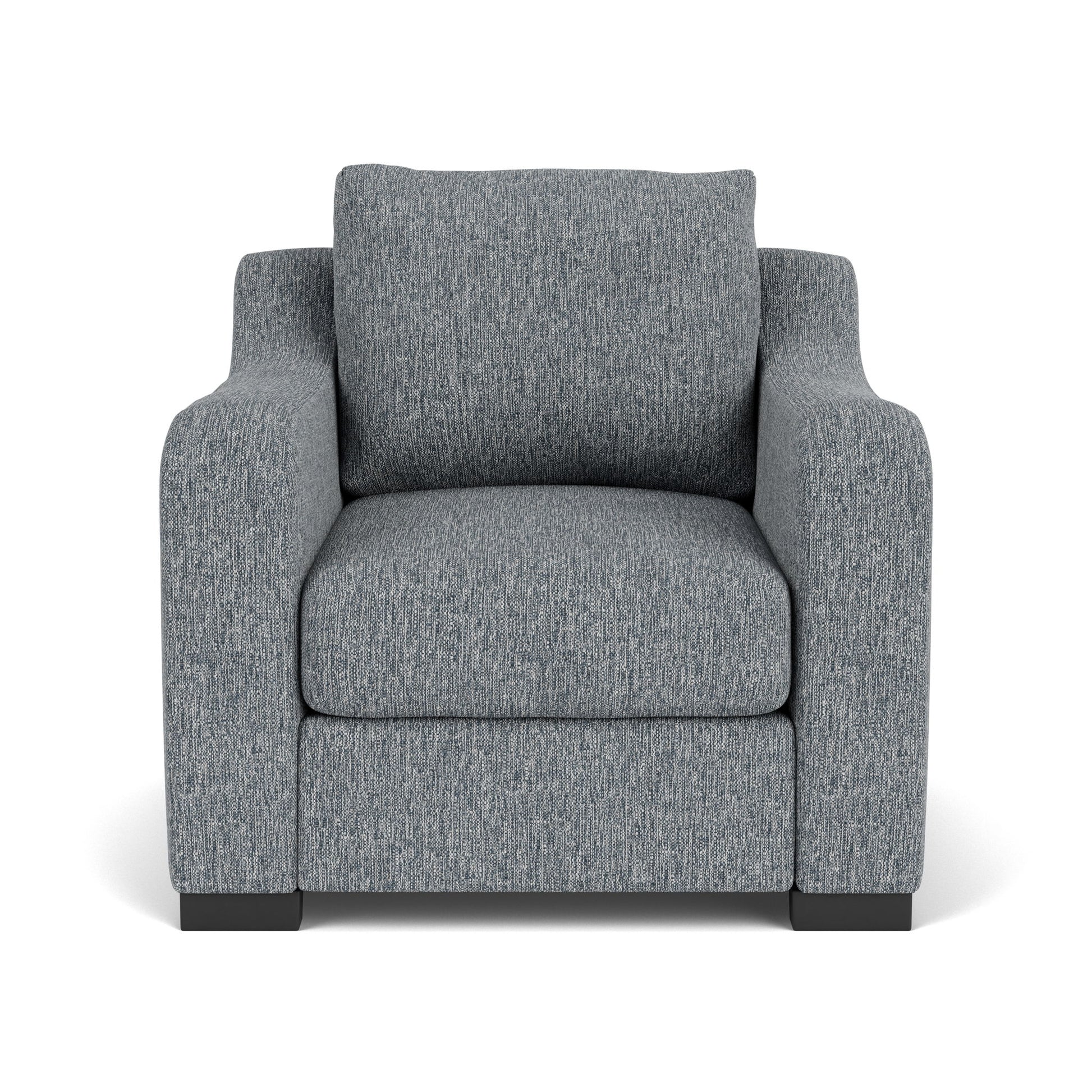 Harmonious Flair. Cozy and casual yet stylishly relevant, the Quinn chair exudes an effortless vibe that harmonizes with any decor. Gently sloping track arms sit atop black recessed legs to make a statement, while plush, sink-in back and seat cushions ensure that comfort never gets compromised. Create the perfect, relaxed look for your living space with your choice of upholstery fabrics, including performance and sustainable options.