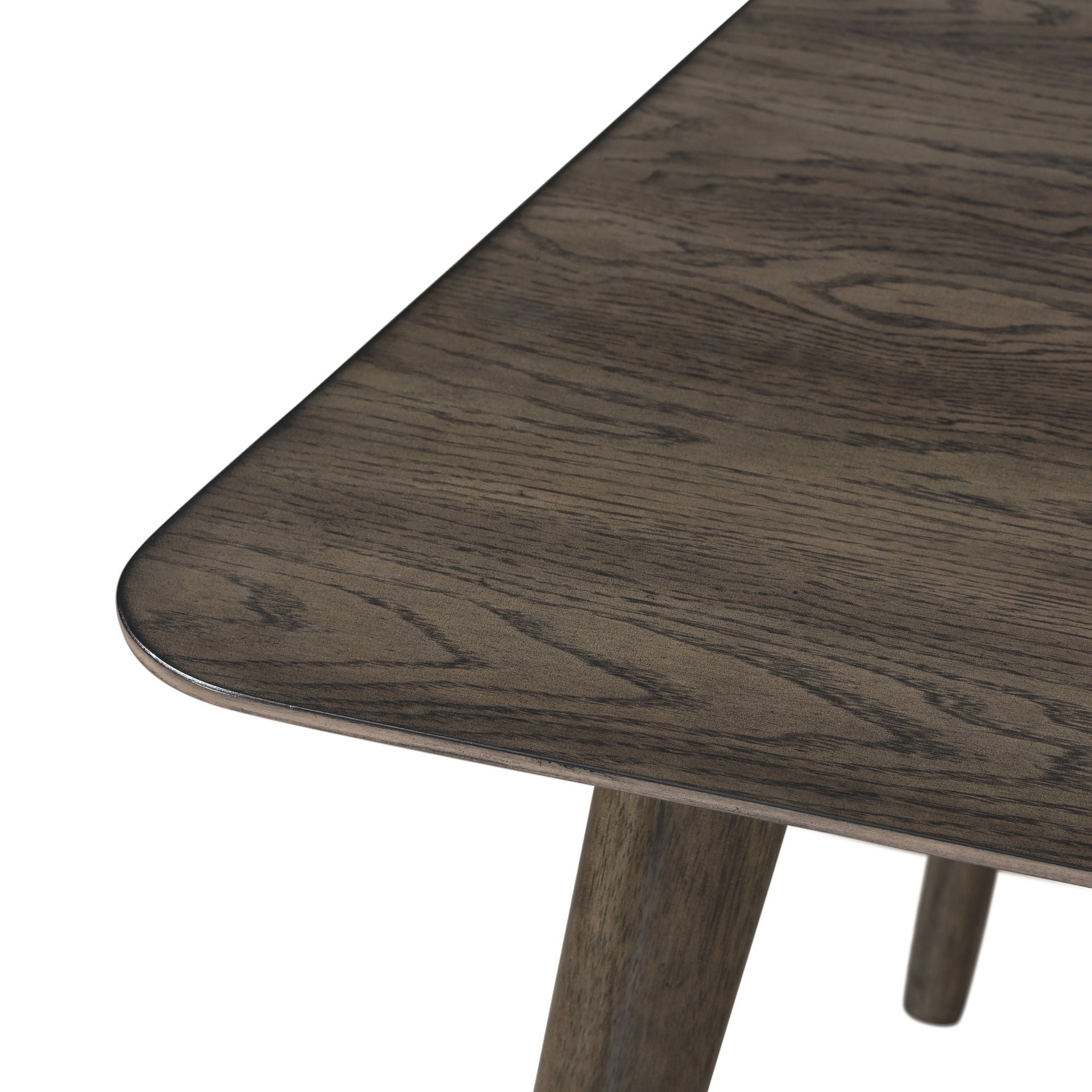 The Rex Mid-Century Modern 72" Rectangle Dining Table in Walnut Brown offers a spacious and stylish solution for your dining area. Crafted from solid rubberwood, manufactured woods, and oak veneers, this table ensures exceptional stability and longevity. The classic mid-century modern design features a minimalist aesthetic with neutral tones, clean lines, rounded edges, and angled, tapered legs, embodying timeless elegance. The multi-step walnut brown finish, hand-rubbed with a clear topcoat, enhances the natural beauty of the wood grain. With ample room, this dining table comfortably provides seating for six, making it perfect for both everyday meals and special gatherings.